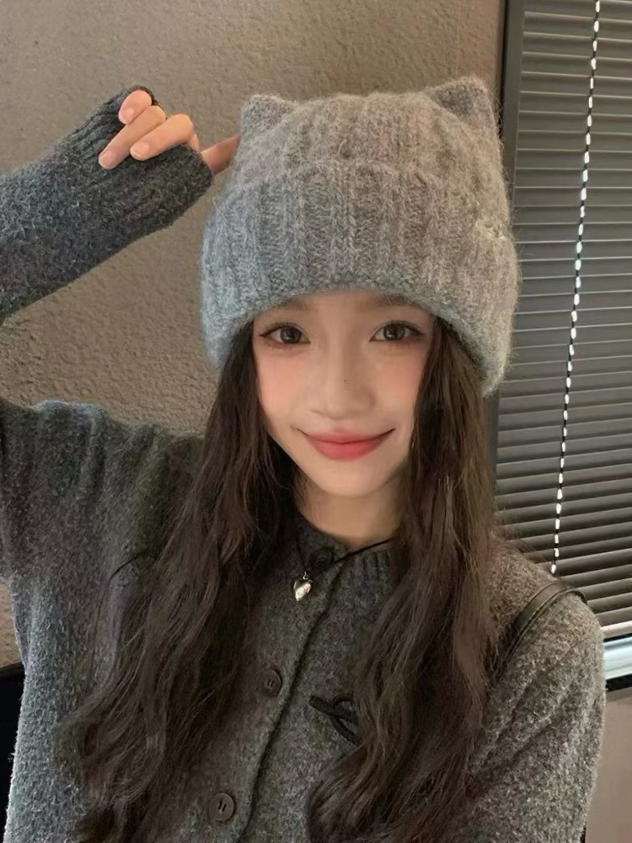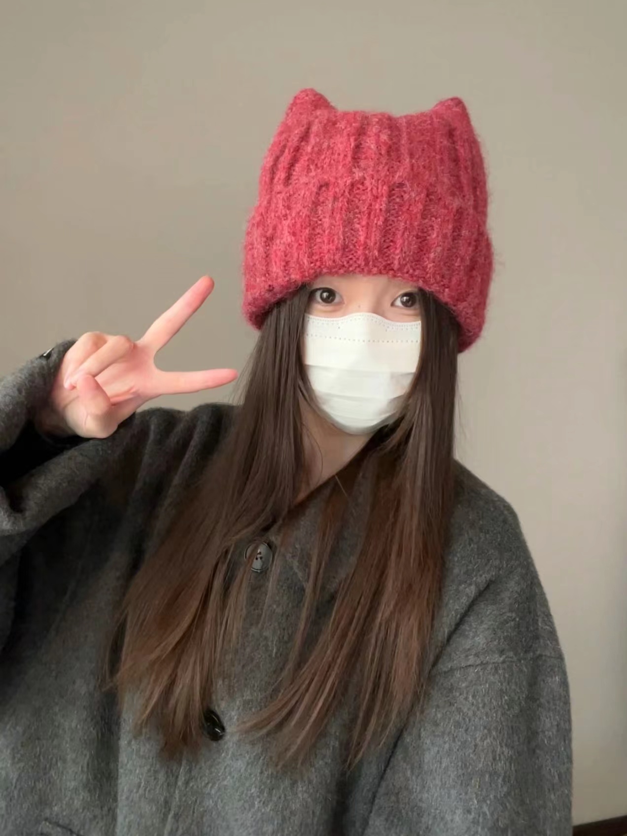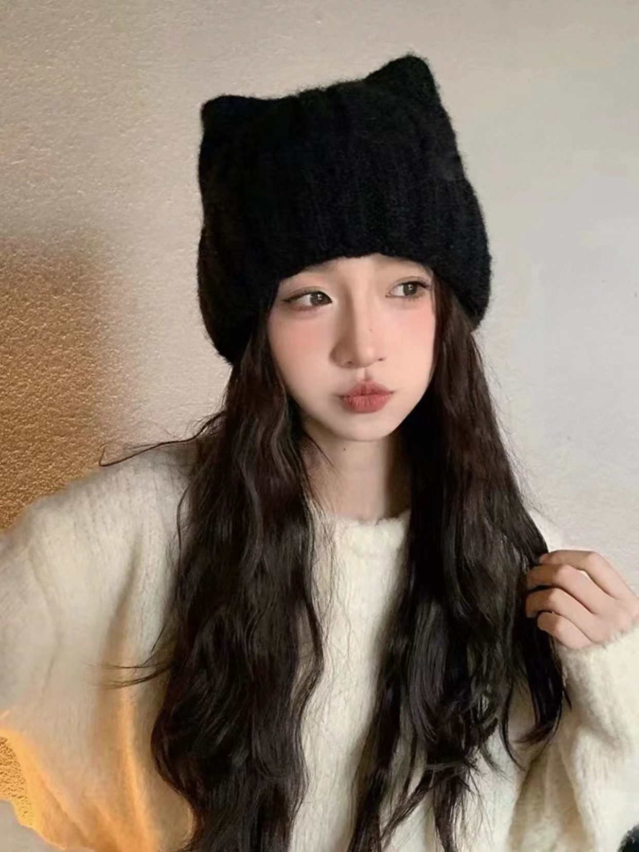 猫耳朵毛线帽子 】帽型贼贼好 特别可爱 冬日出片神器 很厚很暖和 买过我们家针织帽都懂 !!!!帽型正确显脸小足够可爱足够温暖头上的犄角设计 给硬朗的针织帽添了份精致俏皮感