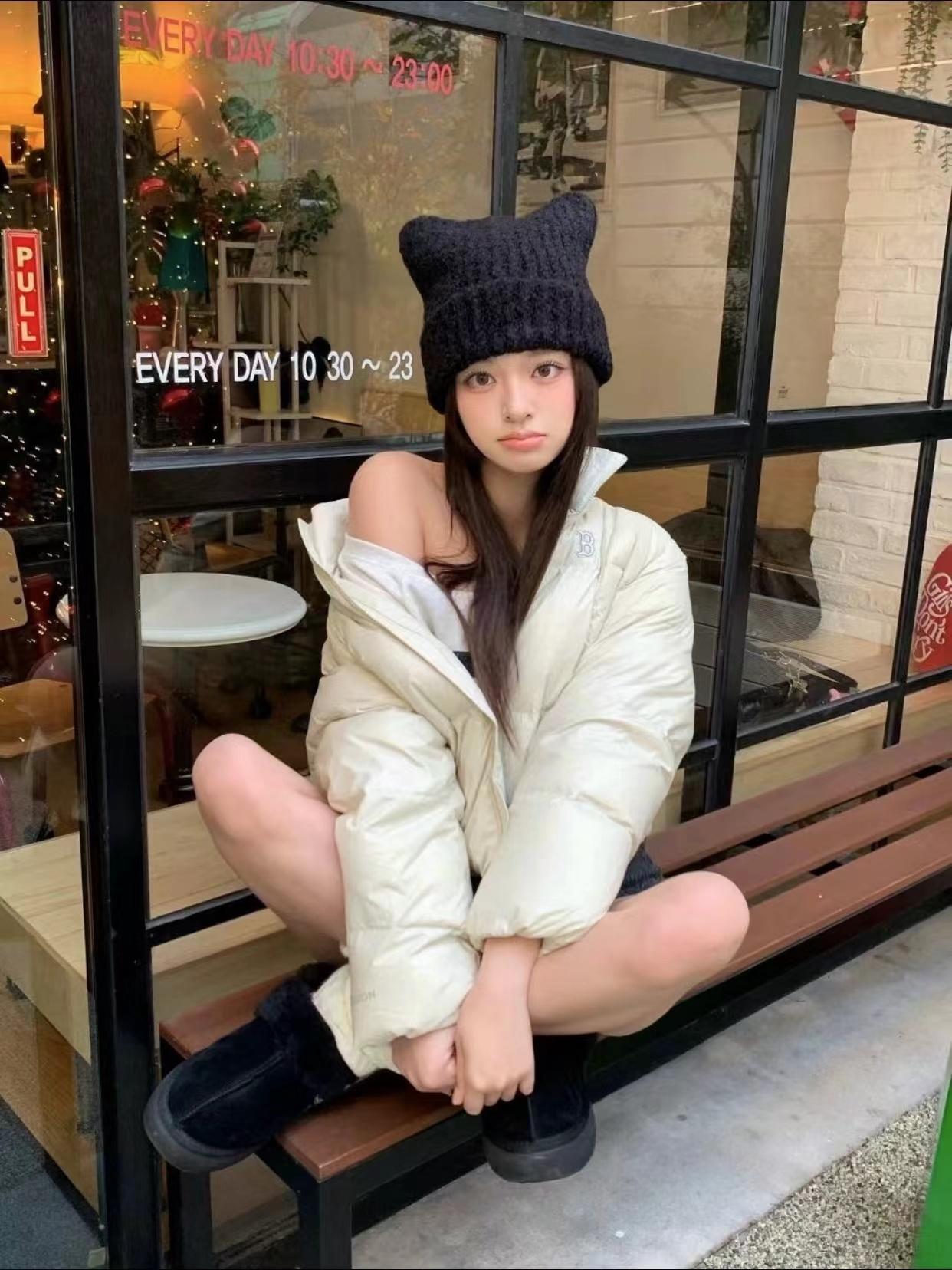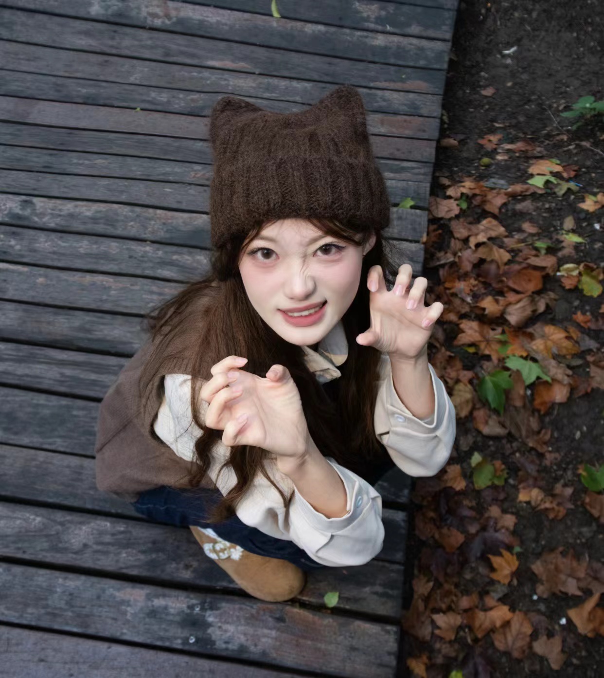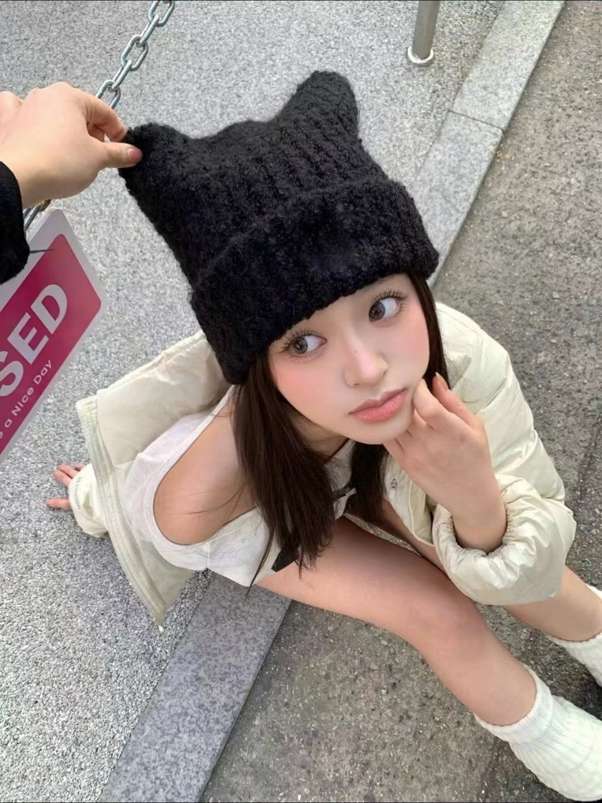 猫耳朵毛线帽子 】帽型贼贼好 特别可爱 冬日出片神器 很厚很暖和 买过我们家针织帽都懂 !!!!帽型正确显脸小足够可爱足够温暖头上的犄角设计 给硬朗的针织帽添了份精致俏皮感