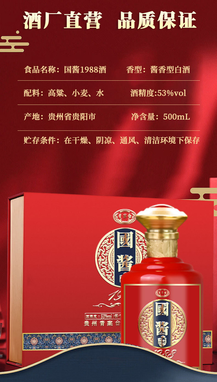 【严选推荐!国酱1988两瓶礼盒装】品质酱香,粮食釀造,口感净爽,酱香型白酒礼盒装酒水节日送礼物优选
