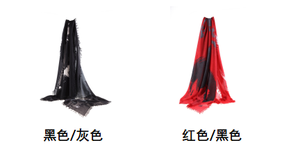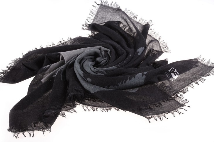 巧妙的黑灰配色,利用灰白两色进行渐变过渡,将时尚与艺术融合于披肩之中。