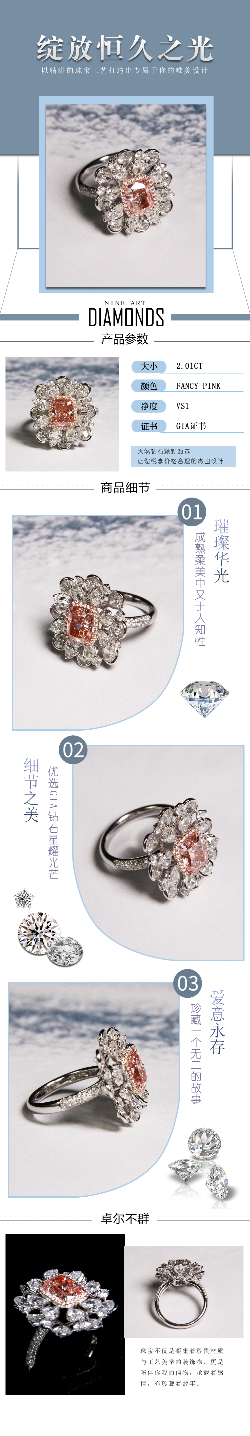 天然粉钻戒指2.01克拉