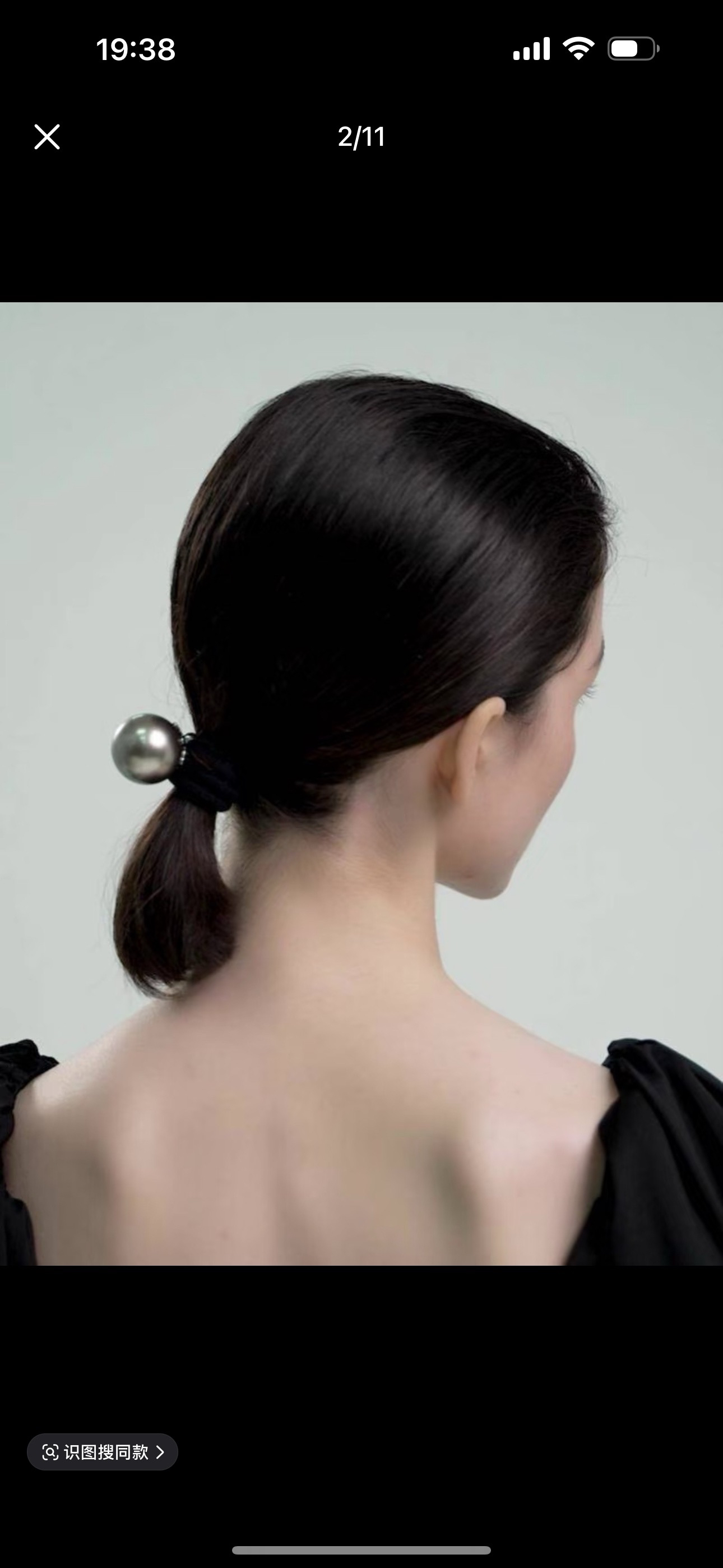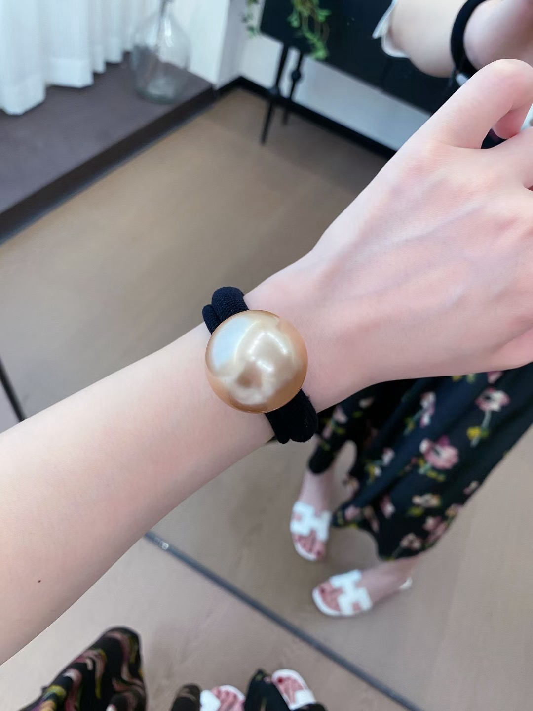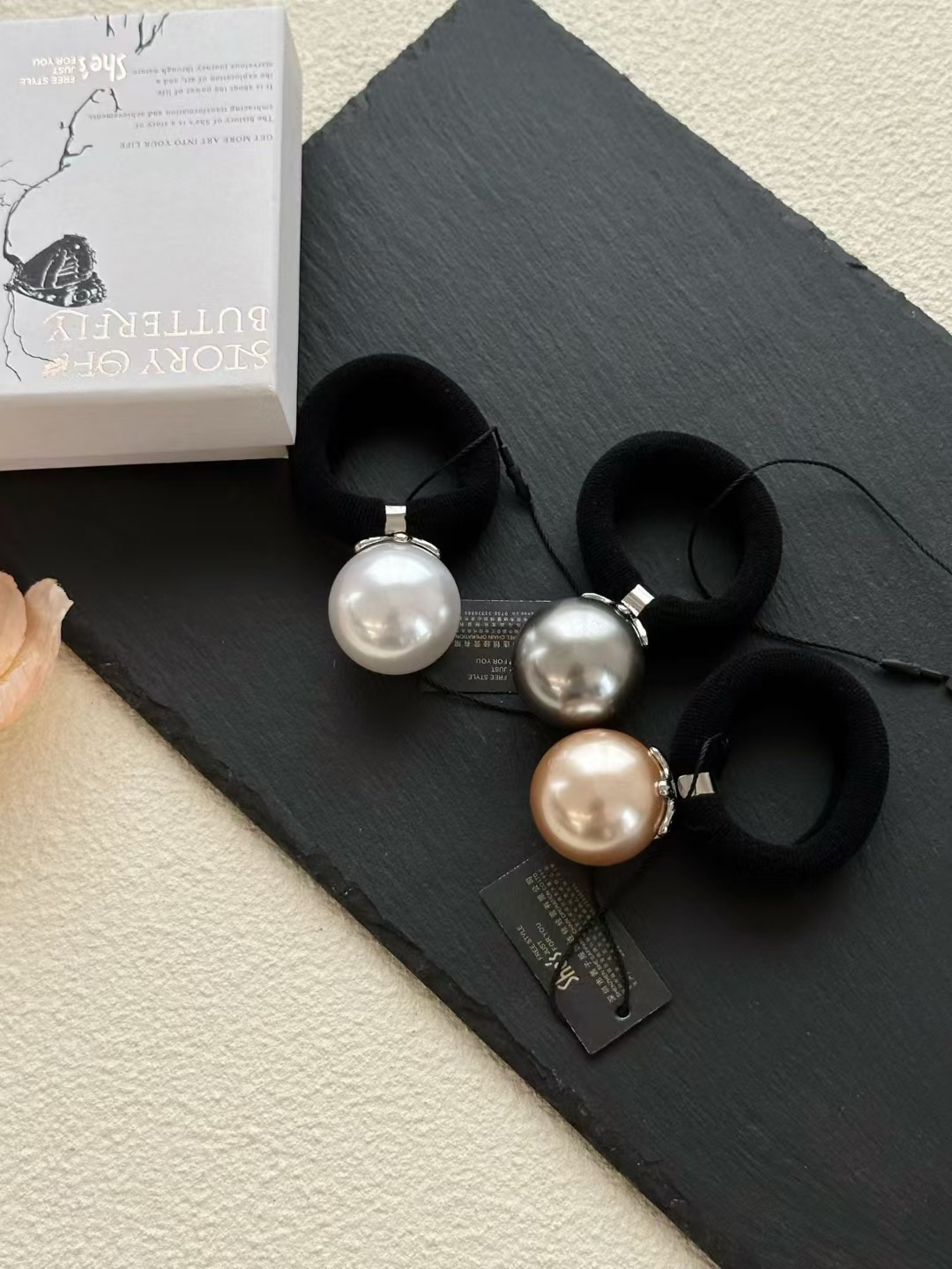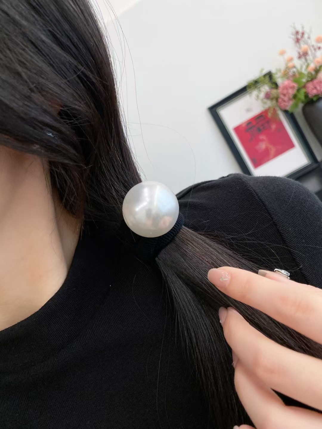 下面金属锤纹底托,将珍珠固定在发圈上,稳固不易掉