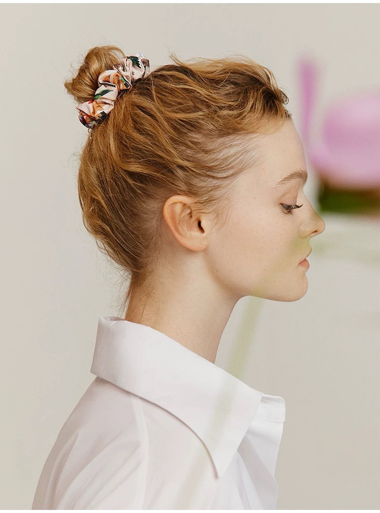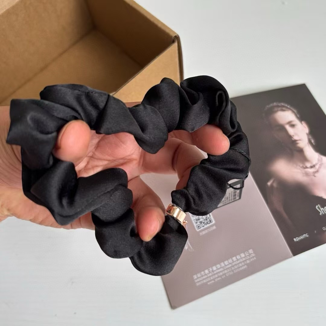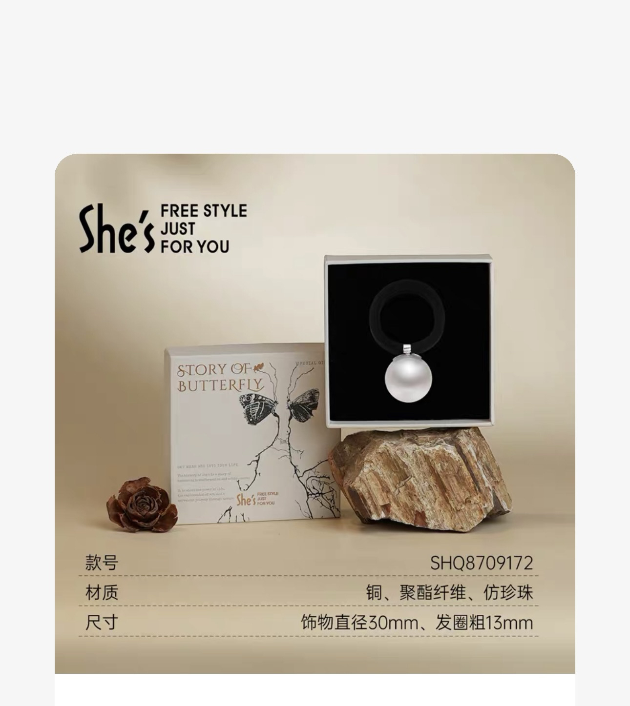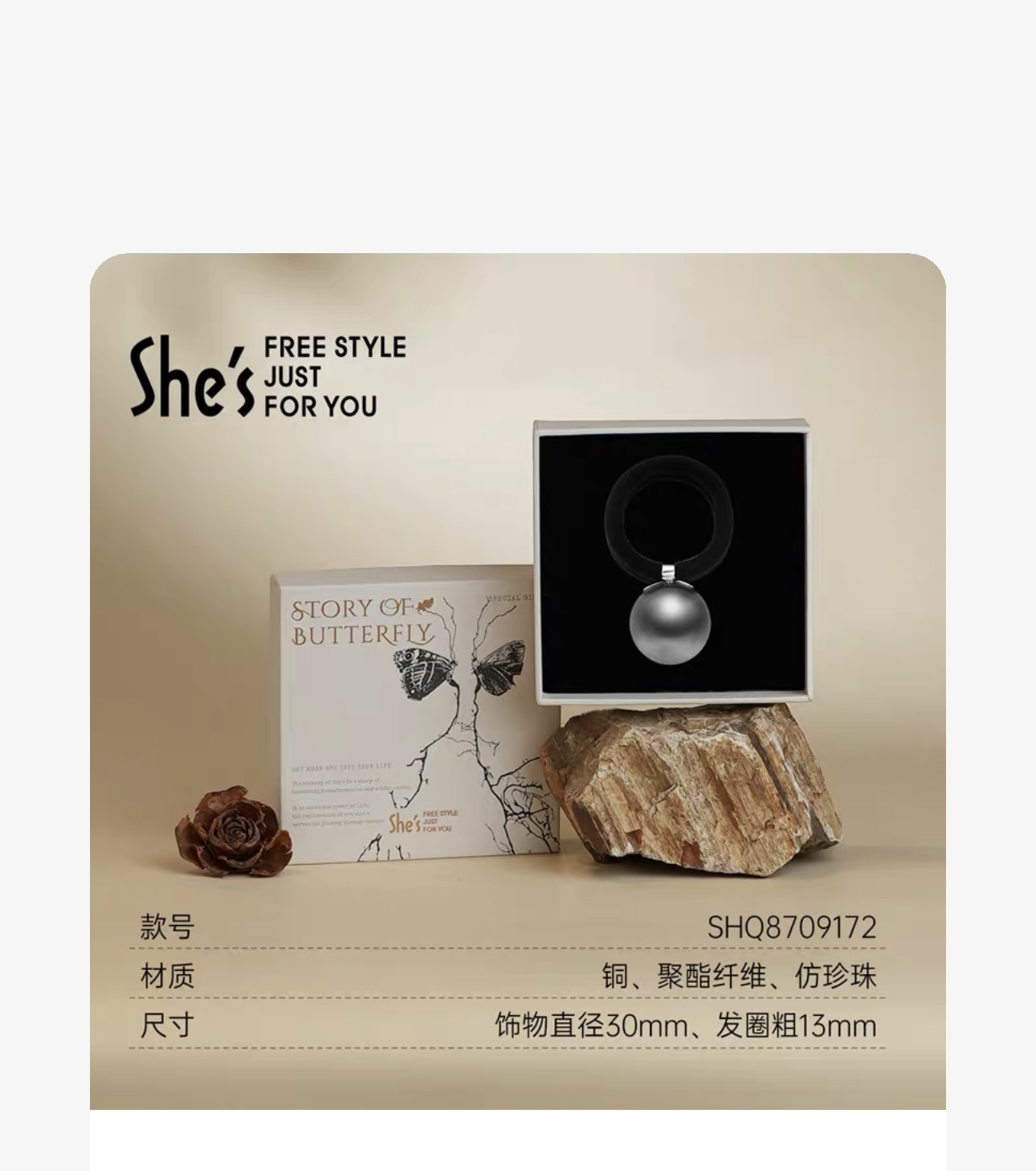 下面金属锤纹底托,将珍珠固定在发圈上,稳固不易掉