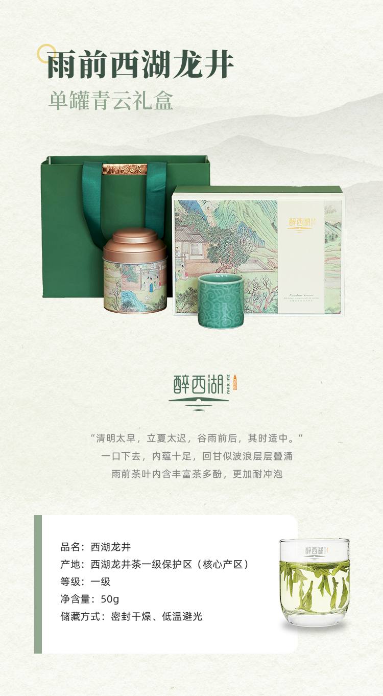 2026醉西湖春茶 雨前西湖龙井单罐青云礼盒50g