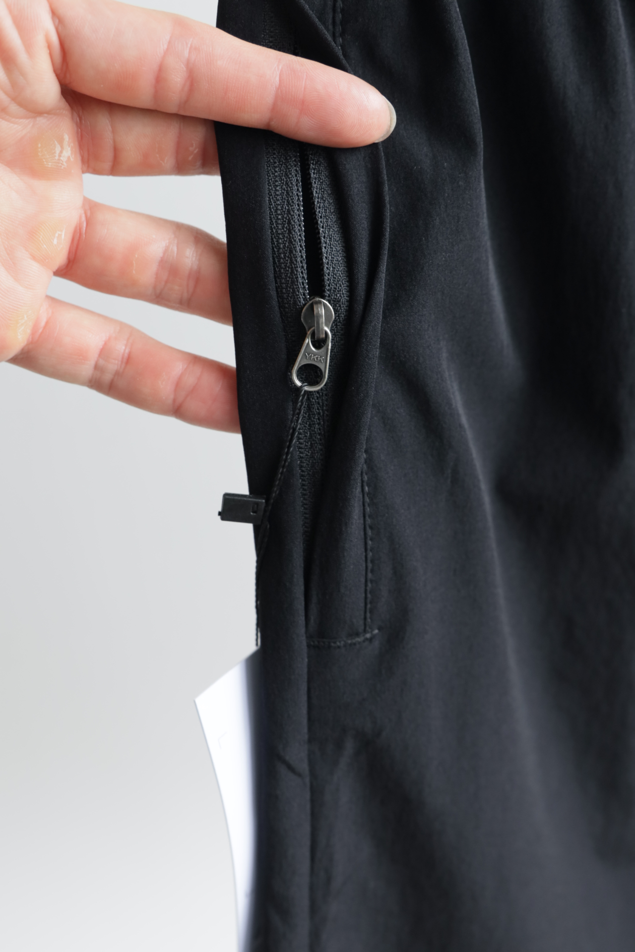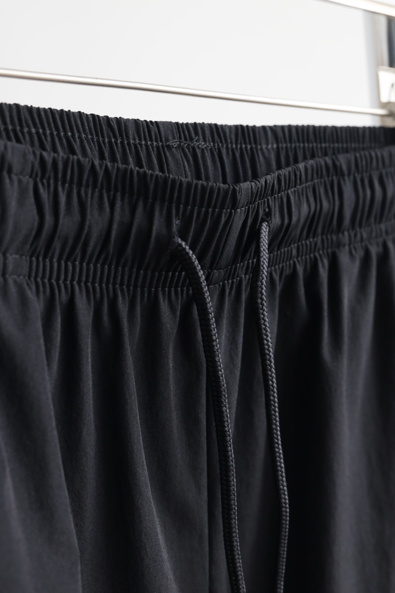 高弹抽绳腰头,松紧自如不勒腹;隐形拉链口袋,随身小物稳妥安放。