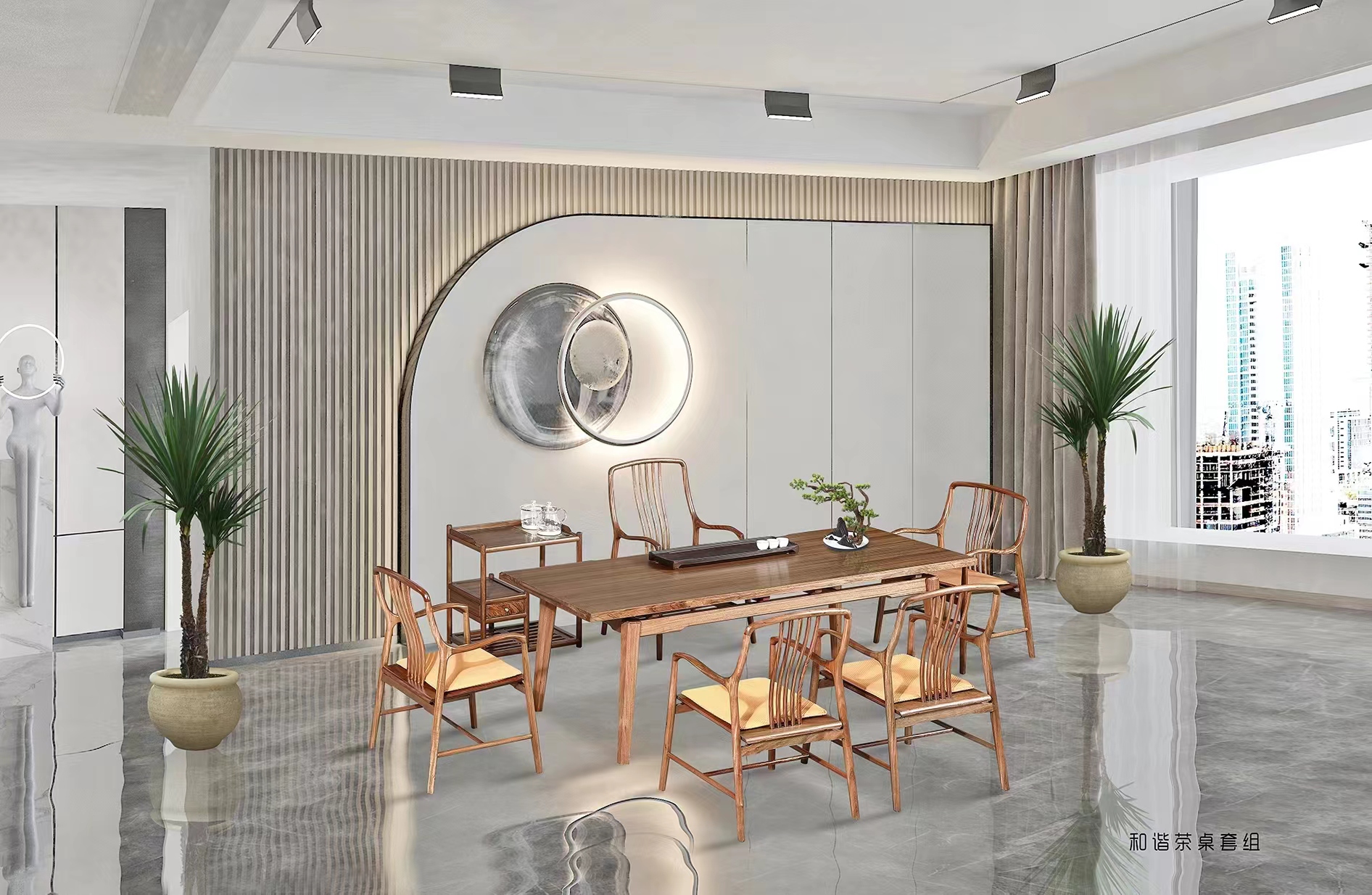 2.36米-(和谐)大叶檀六件套茶桌
