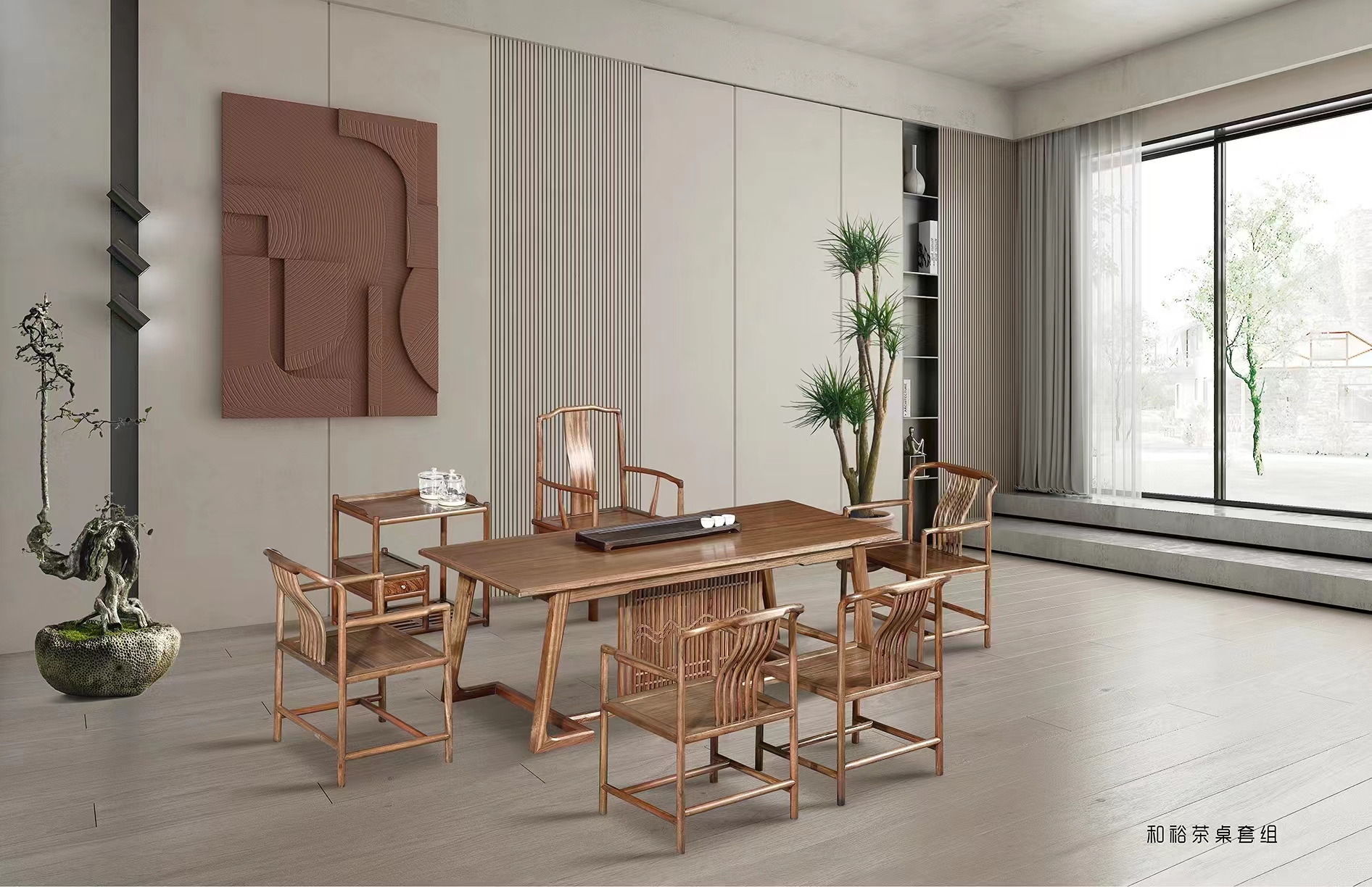 2.16米-(和裕)大叶檀六件套茶桌