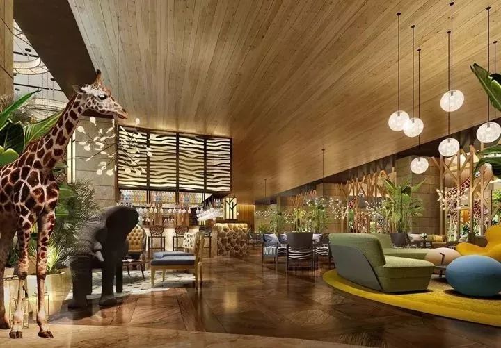 酒店客房也是非常有趣哦,各种不同的动物元素融入其中,展现了如长颈鹿、斑马、大象等各种主题内容,我们透过落地窗向外望,能看到野生动物们在园区内闲庭信步,更能远眺碧波荡漾的太湖。