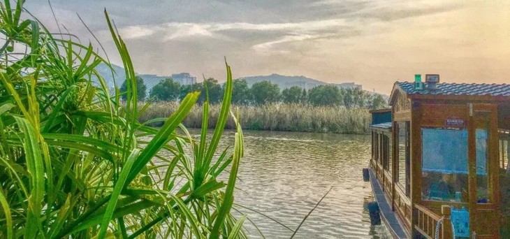 我们坐上湿地的游船,慢慢行进,望向隔岸的人家,江南水乡该有的样子,它都有,水波粼粼,河里的小鱼儿时不时冒出水面感受新鲜的空气,行舟之际,享受亲子时光。