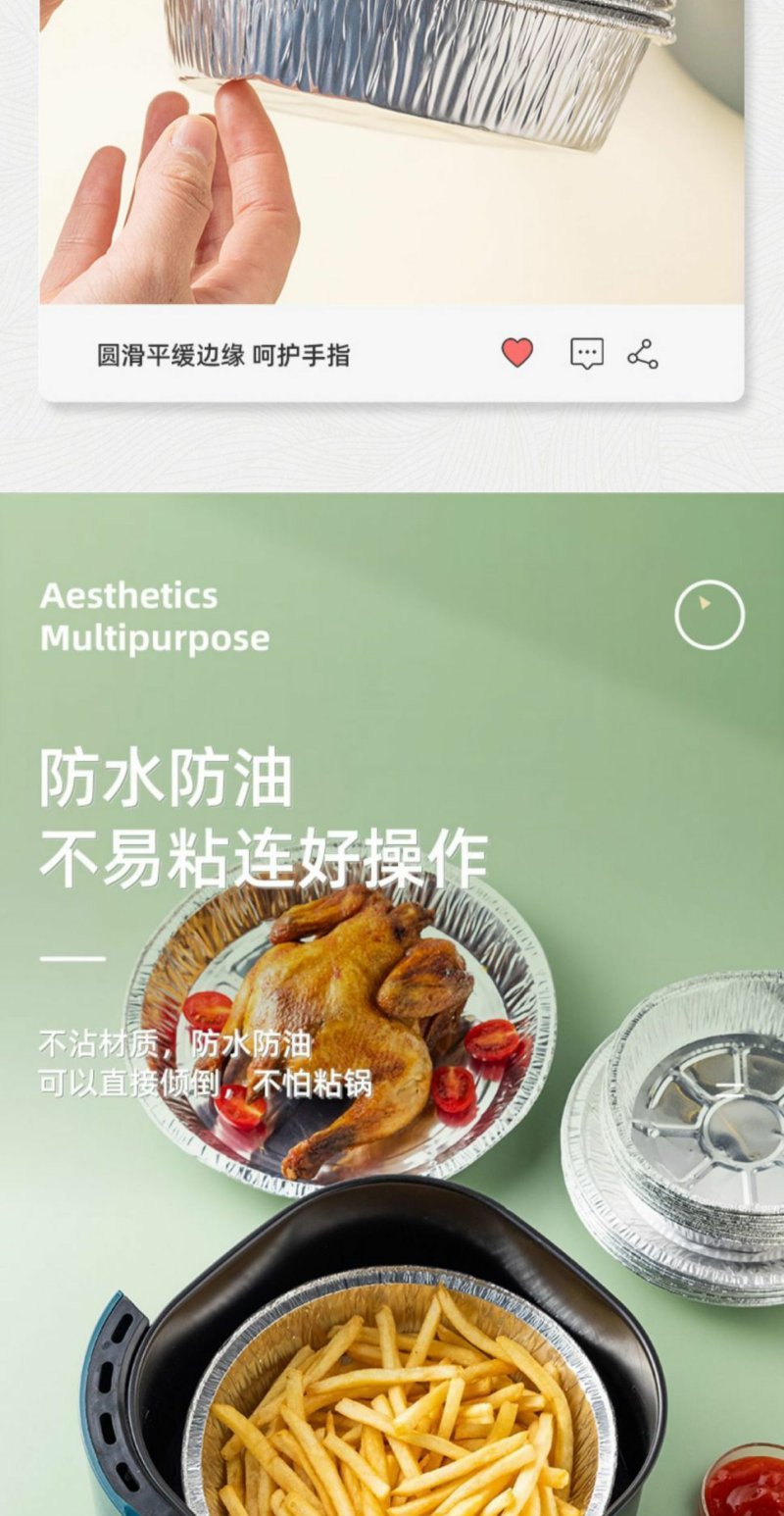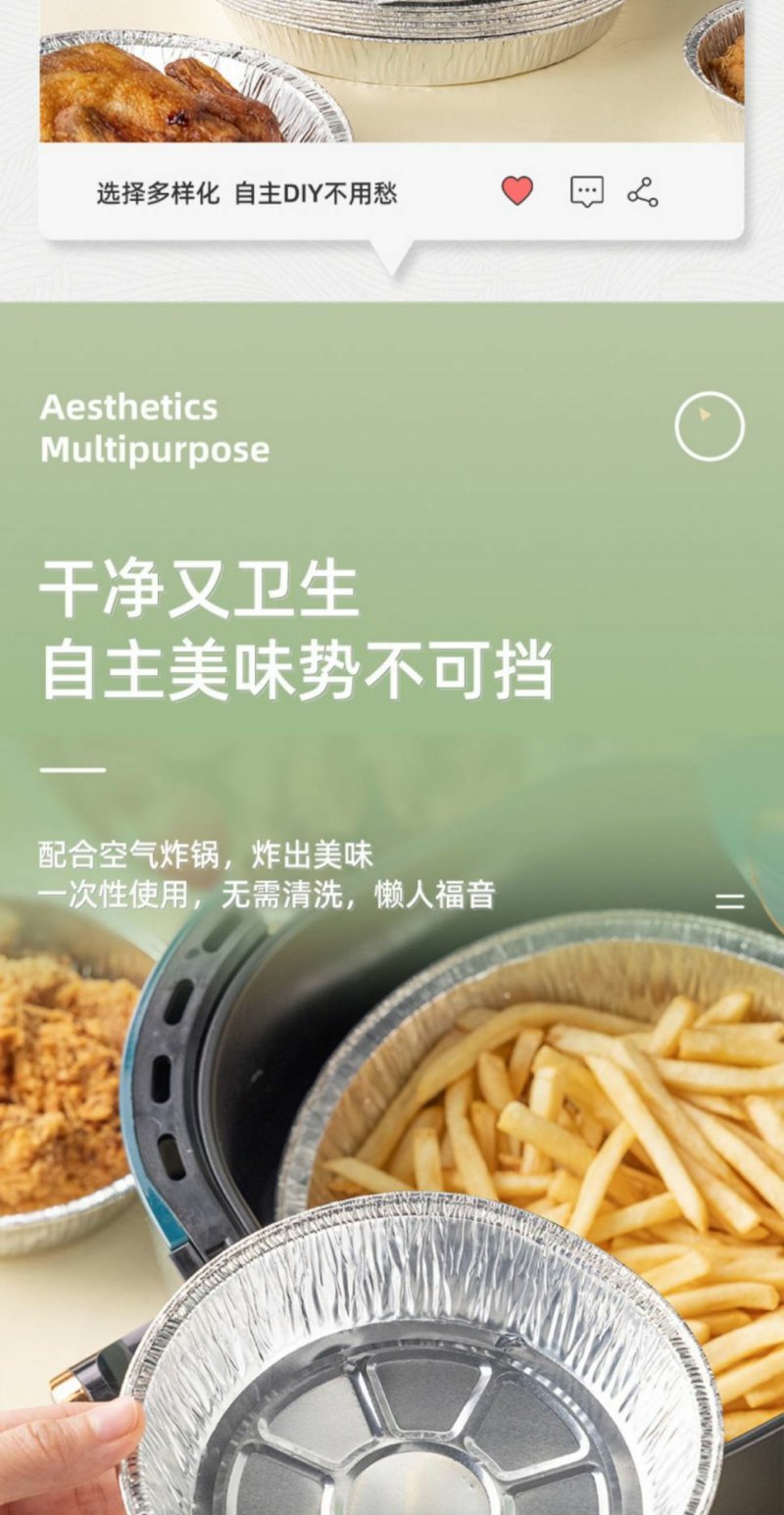 【50只】锡纸盘空气炸锅专用纸碗托烧烤锡纸盒加厚食品级烤箱烘焙防油烤盘