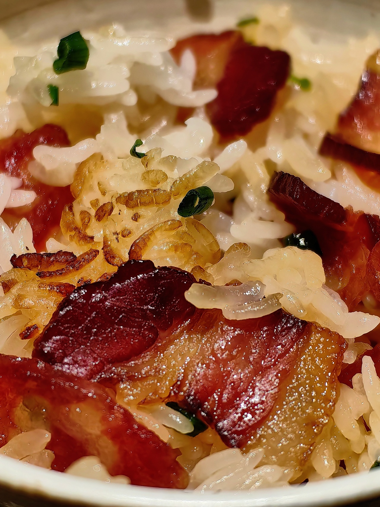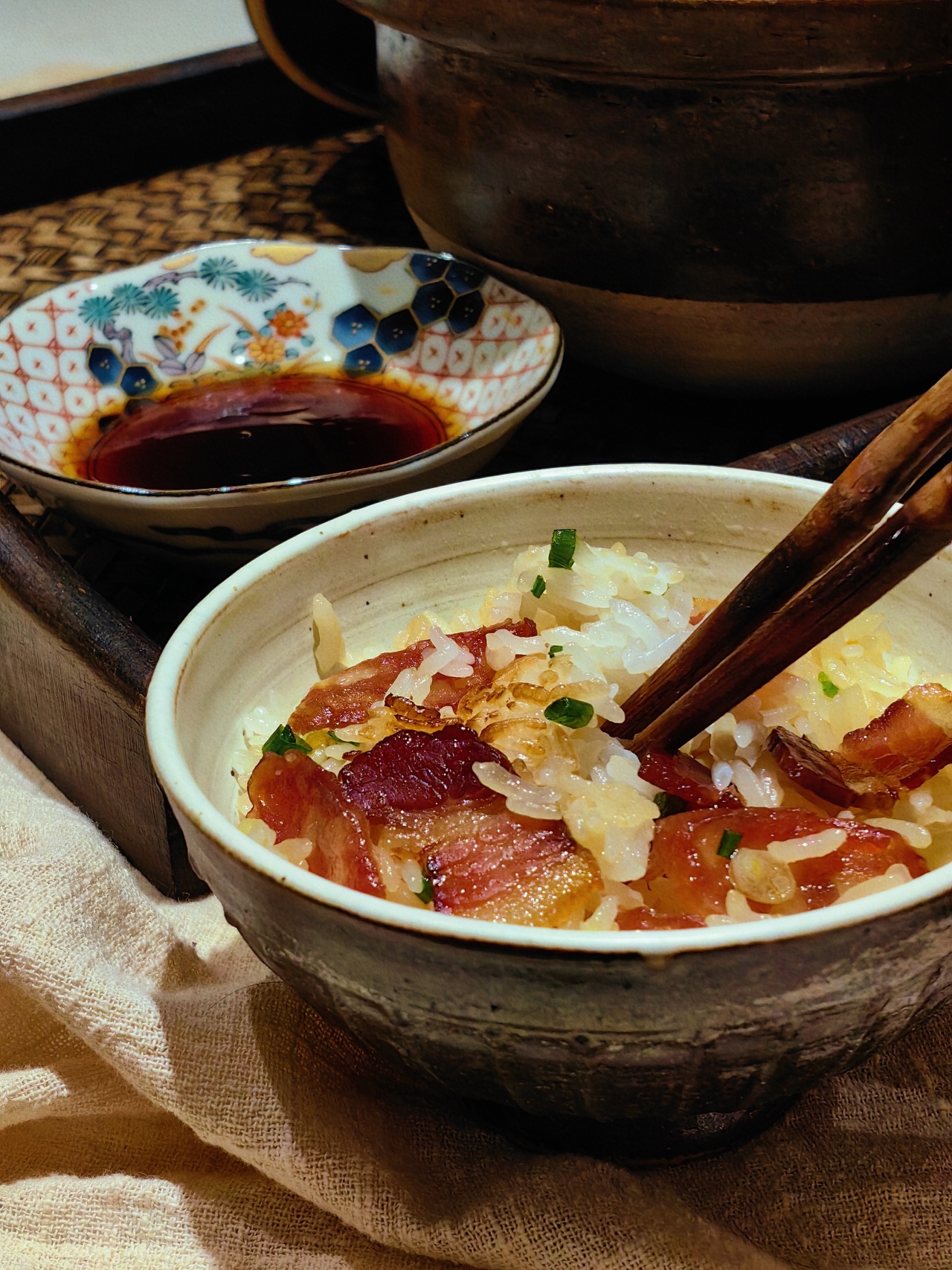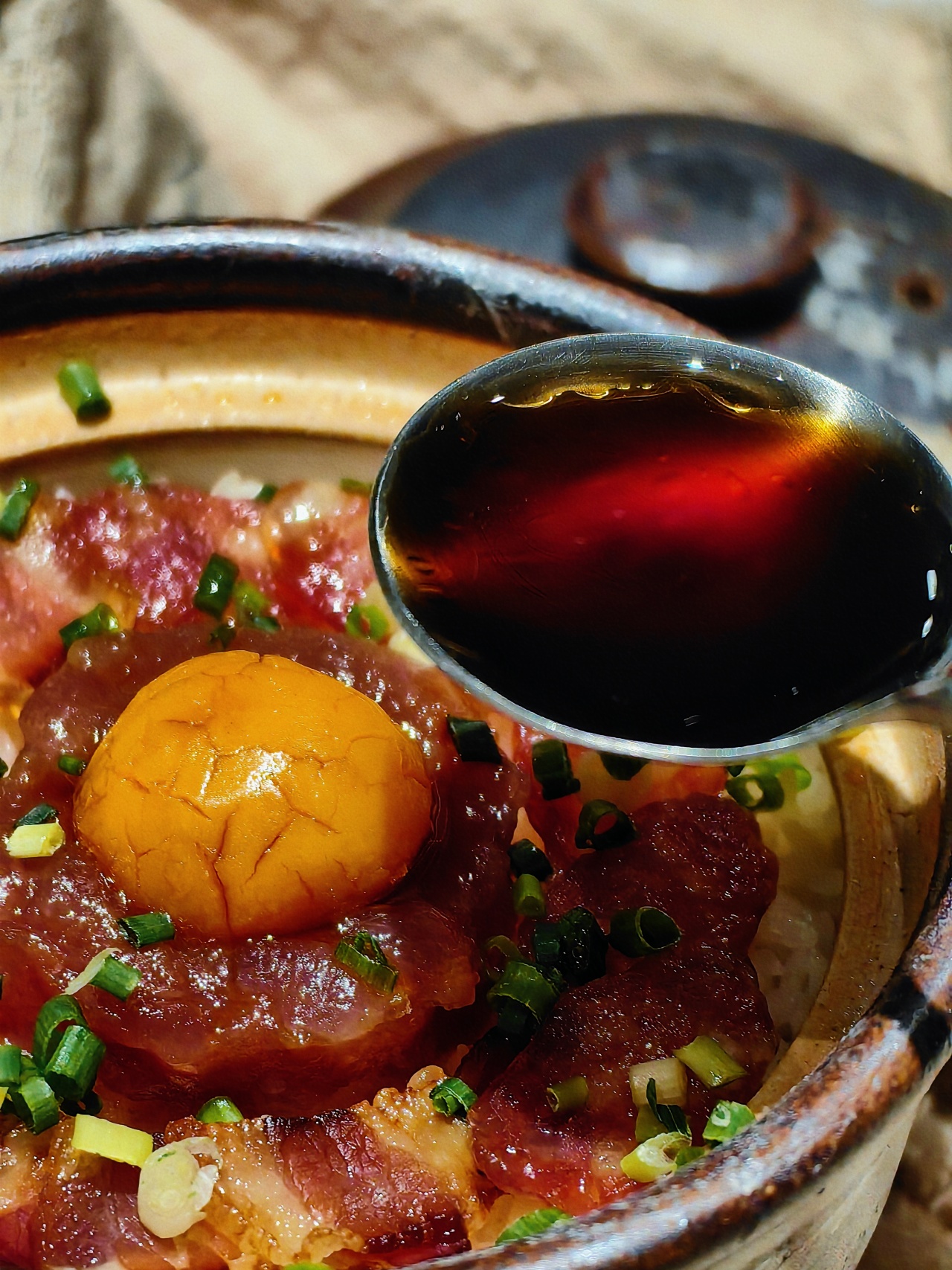 广式腊味口味偏甜,又带点酒香气,非常适合用来做腊味煲仔饭!砂锅底抹上油,再把米饭浸个半小时,煮到半熟,再码上切好的腊味一起焖煮,最后淋上酱汁,便能品尝到嘎嘎美味的腊味饭啦!酱汁可以用一勺生抽,一勺蚝油,一勺香油,加半勺白砂糖和一点白开水。调匀,一浇,简直啦!