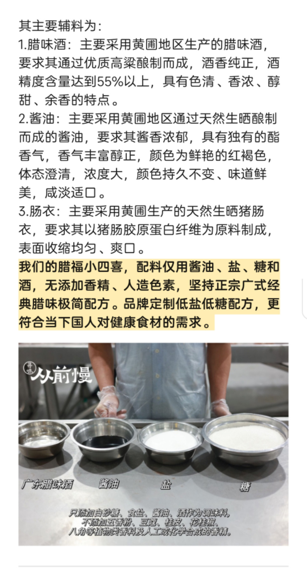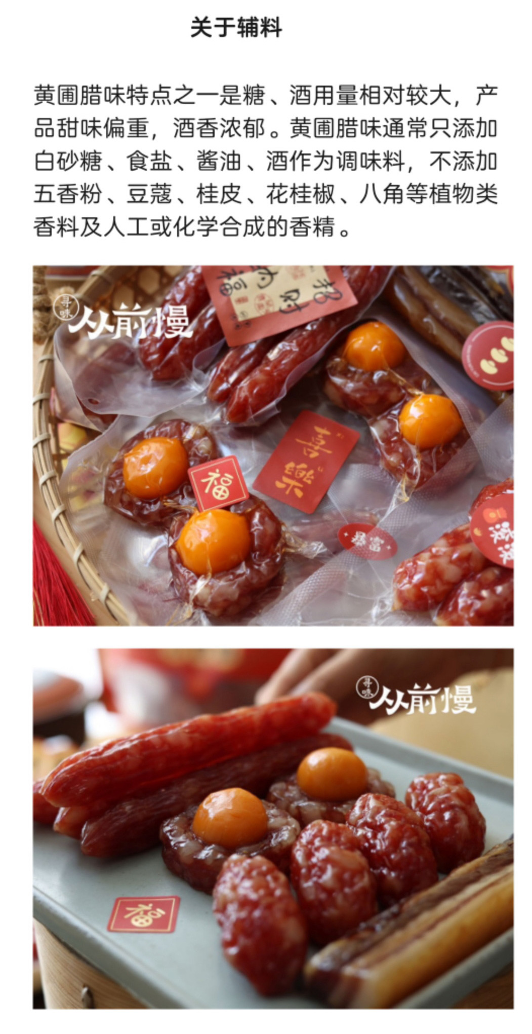 腊福的腊肉、腊肠和凤凰盏,配料表极为干净,仅使用白酒、糖、酱油进行腌制,绝不添加任何香精、人造色素等添加剂和防腐剂。同时还是低盐低糖配方,色、香、味俱佳,也更健康!