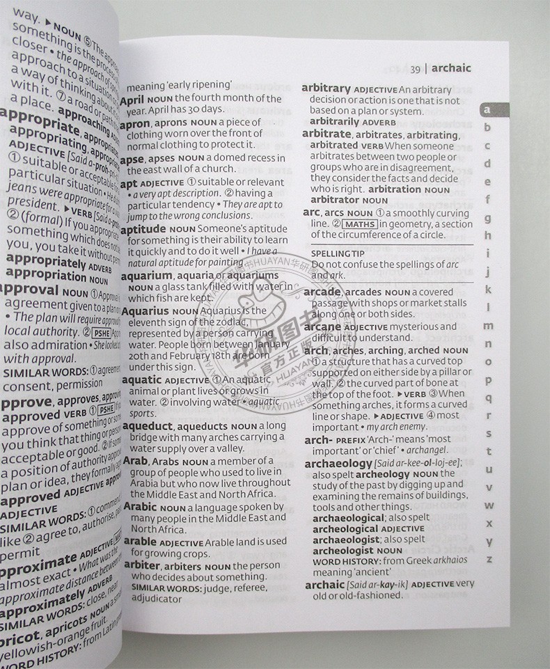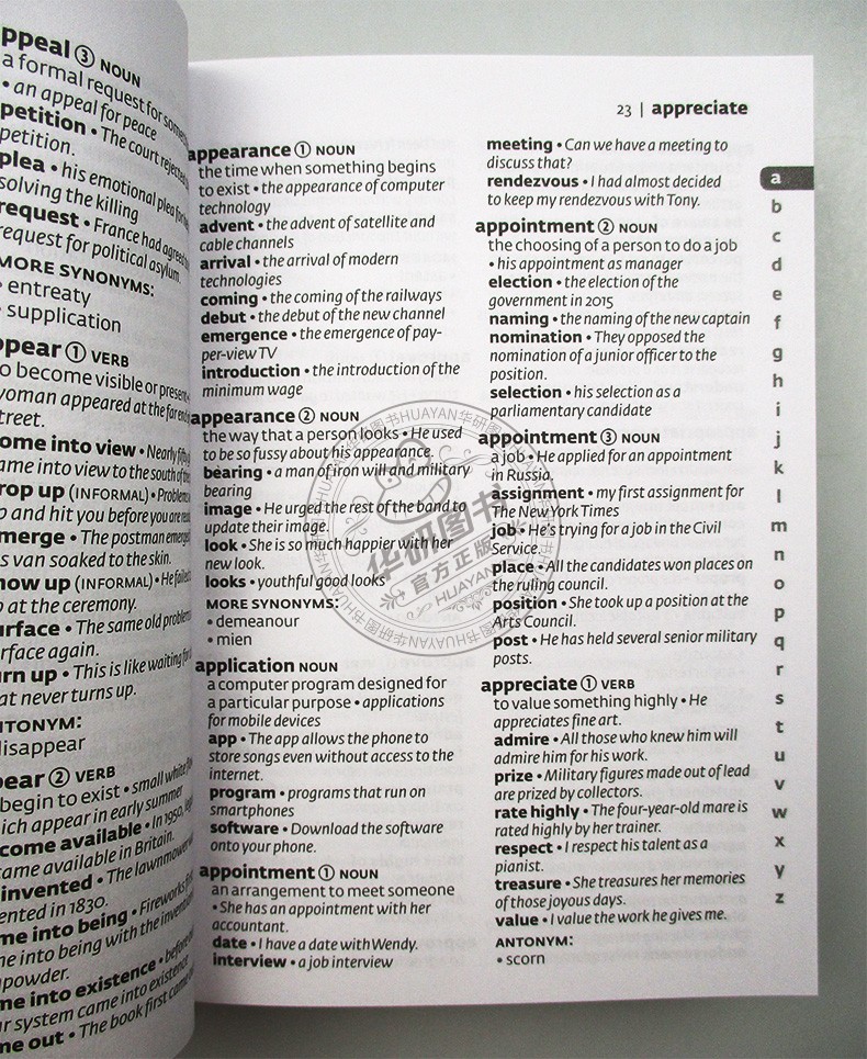 1. 布局清晰,每一页都有字母表标记,方便迅速检索单词。