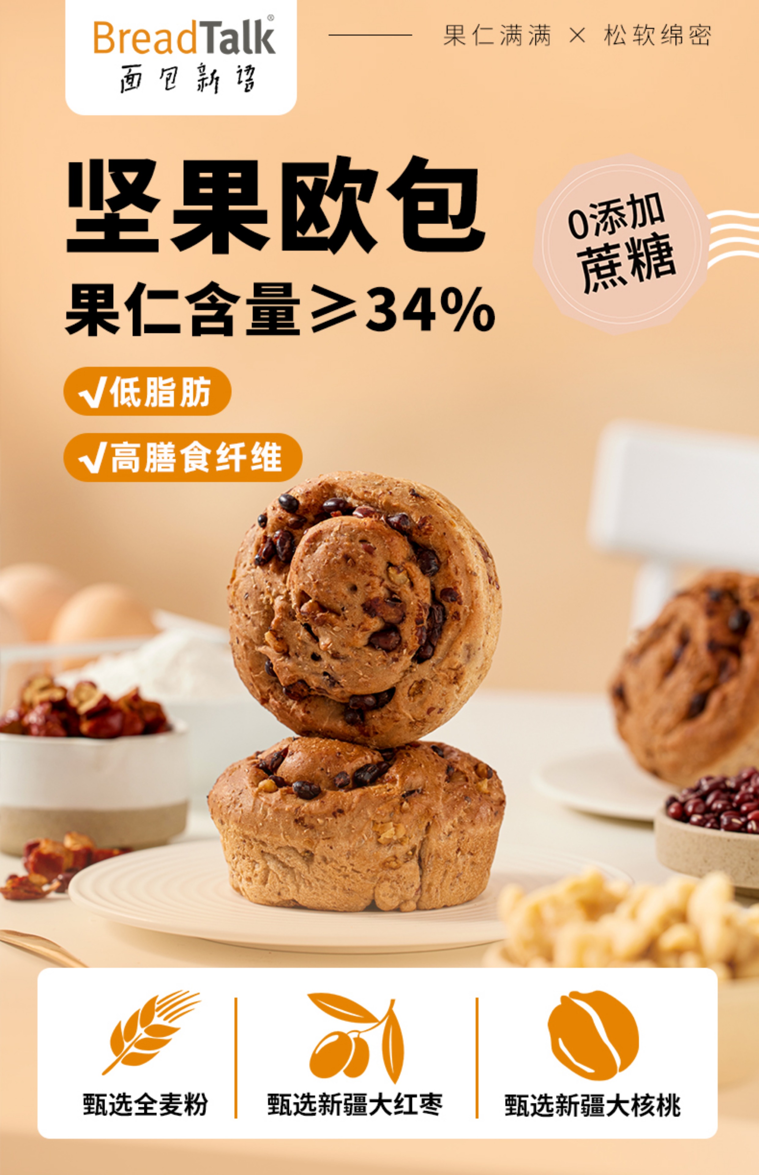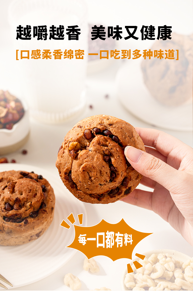 泰甄选 新加坡面包新语 无蔗糖 低脂 全麦坚果欧包粗粮早餐代餐面包64g/包