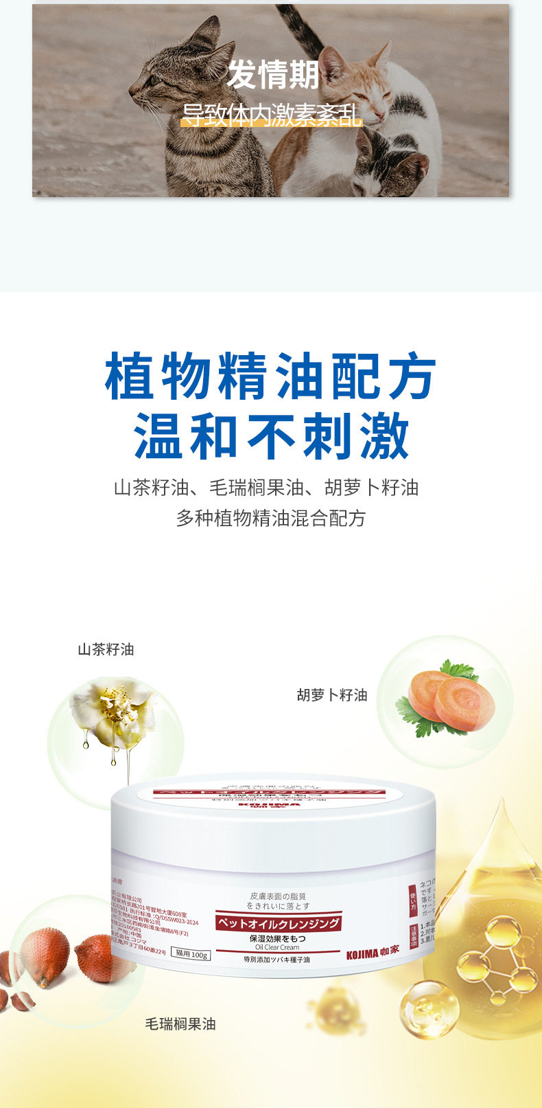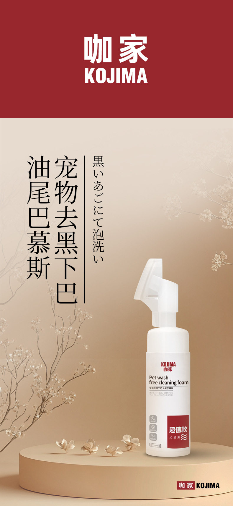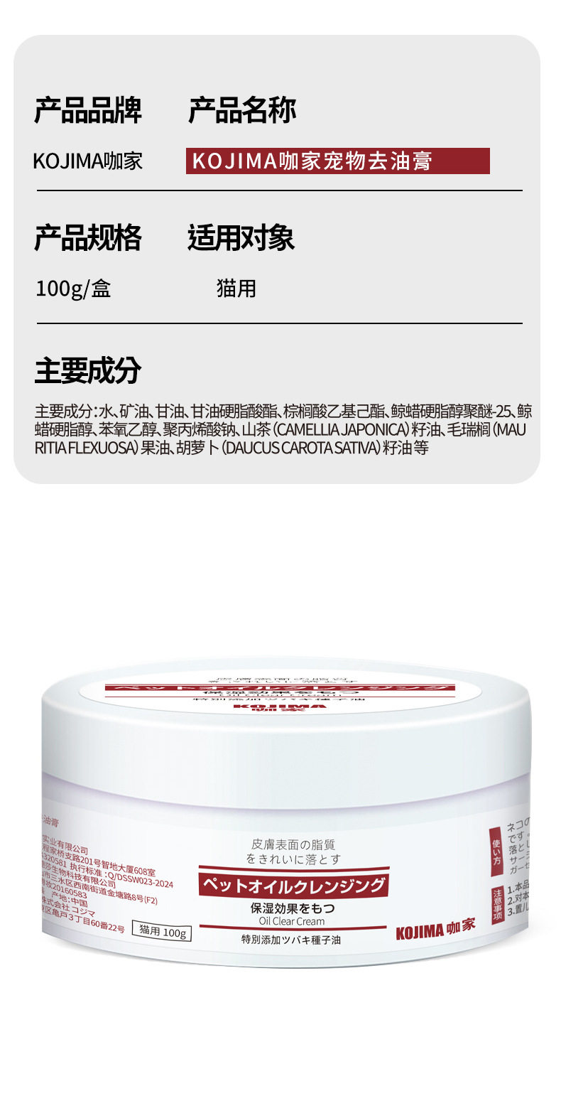 kojima猫咪去油膏黑下巴清洁油尾巴黄胡子宠物护毛素洗澡液沐浴露