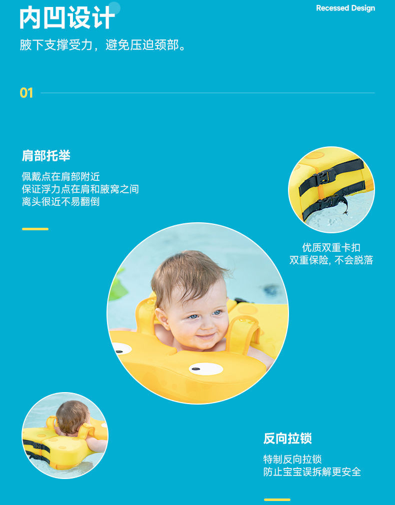 【易穿戴免充气腋下圈】婴儿游泳圈 0-3岁儿童免充气腋下圈家用新生儿宝宝洗澡圈