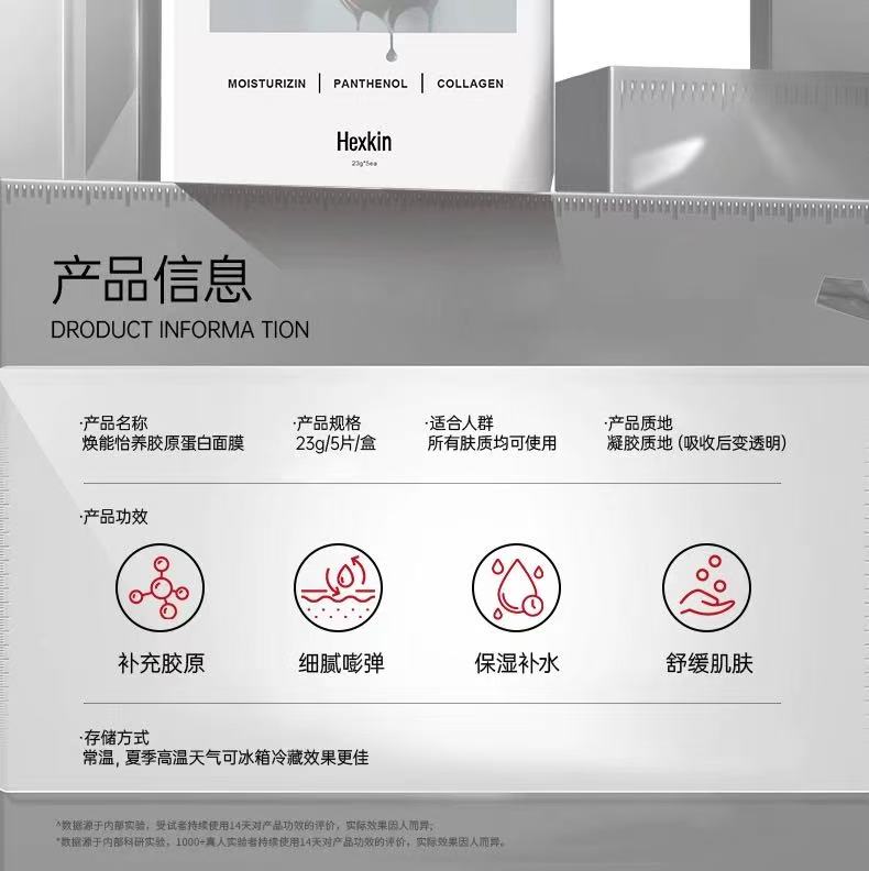 【超模君严选 韦雪同款 HEXKIN赫诗琴 童颜胶原炮灌注面膜】焕能怡养胶原蛋白面膜 牛奶光胶原炮灌注面膜 牢牢锁住肌肤水分 舒缓肌肤脆弱不适 淡化黑色素