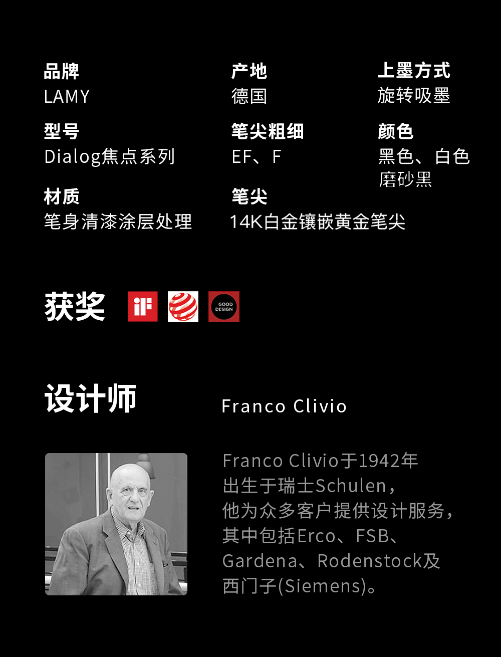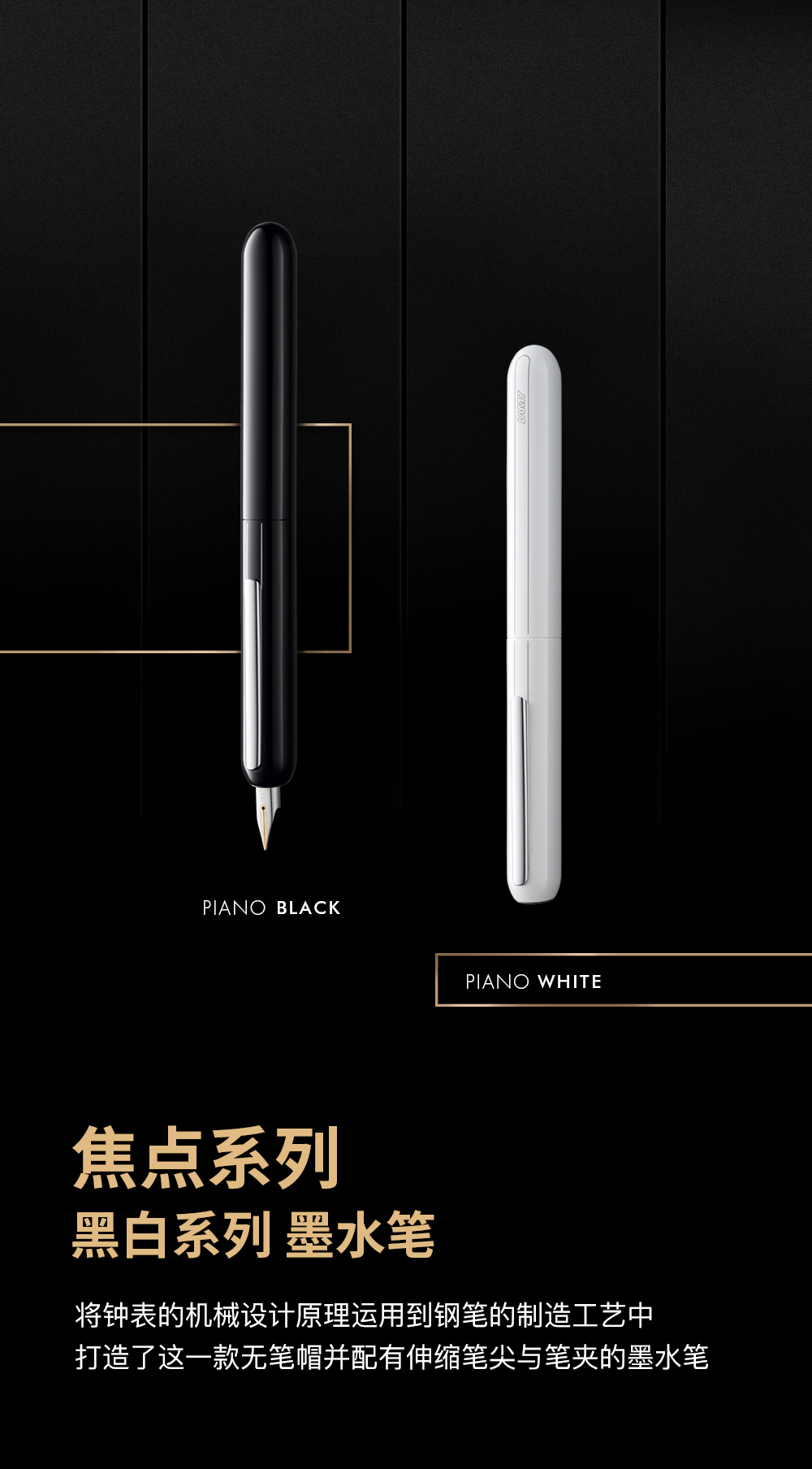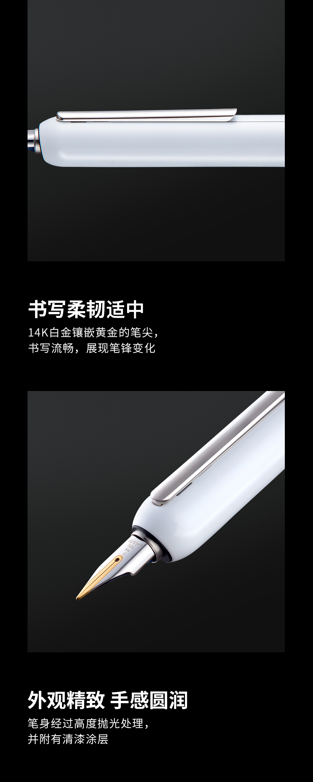 LAMY德国凌美焦点3Dialog系列14K金尖商务墨水笔礼物 黑白双色旋拧系统可伸缩笔夹