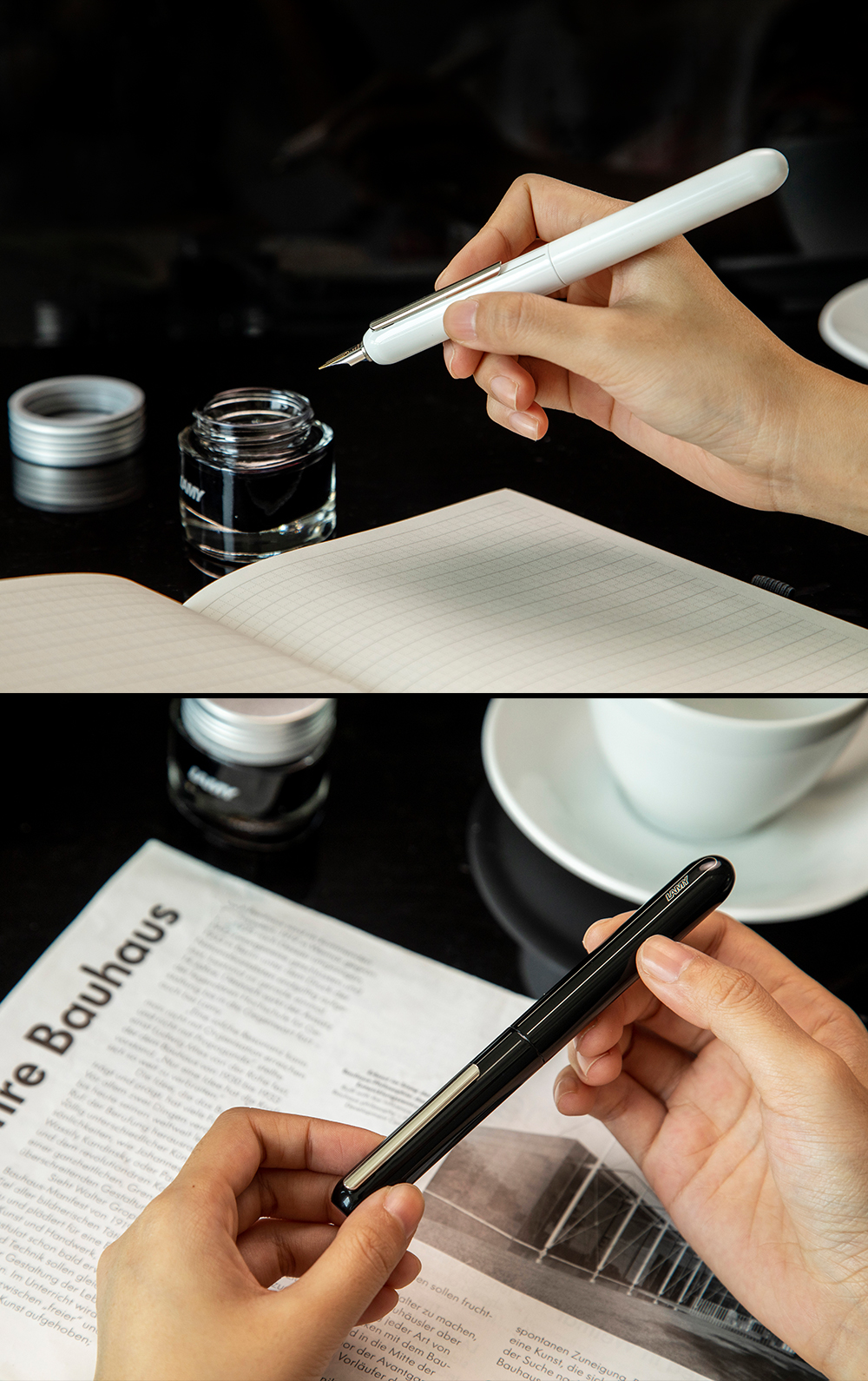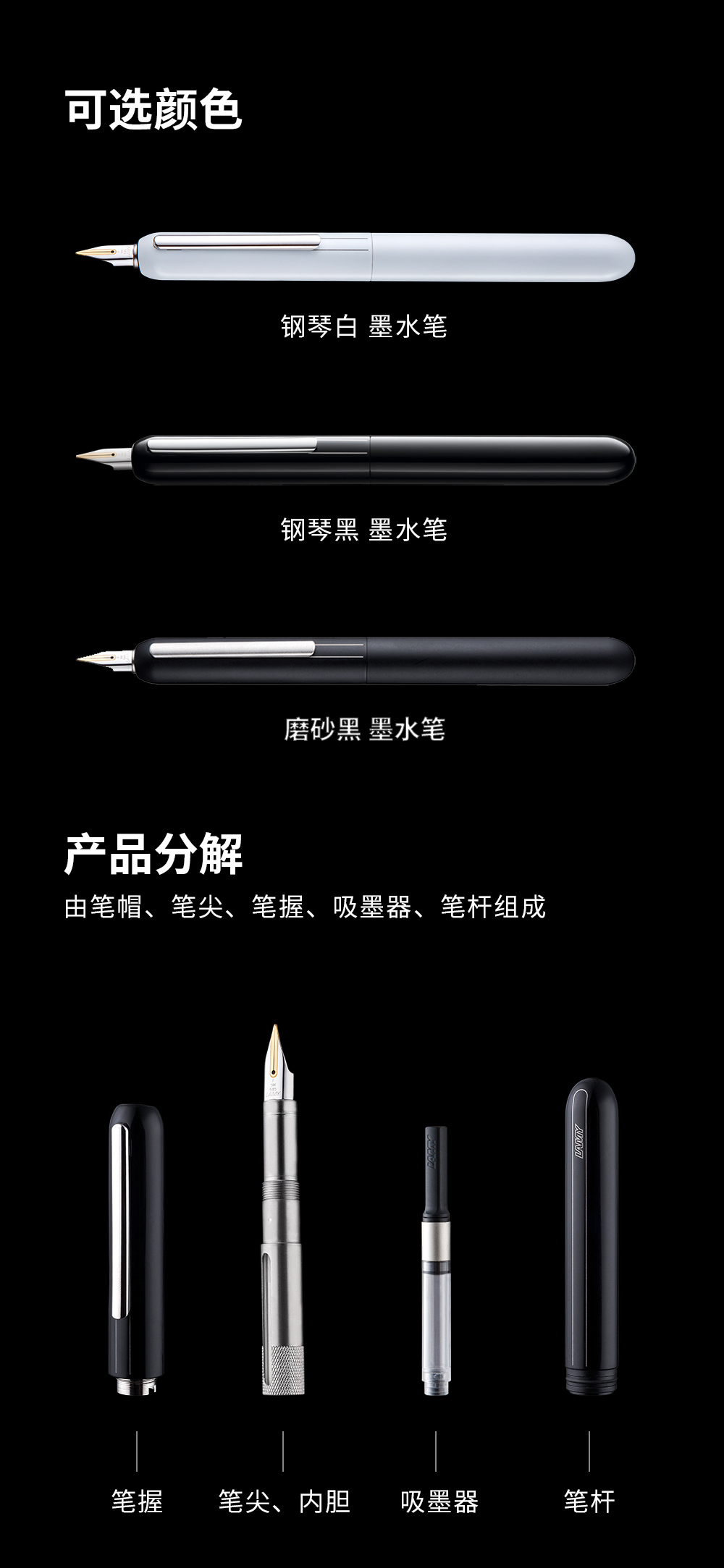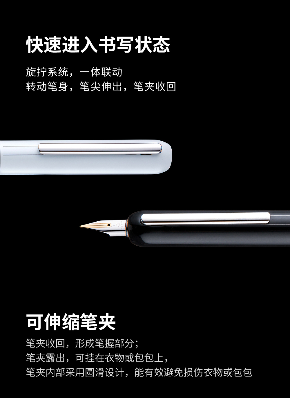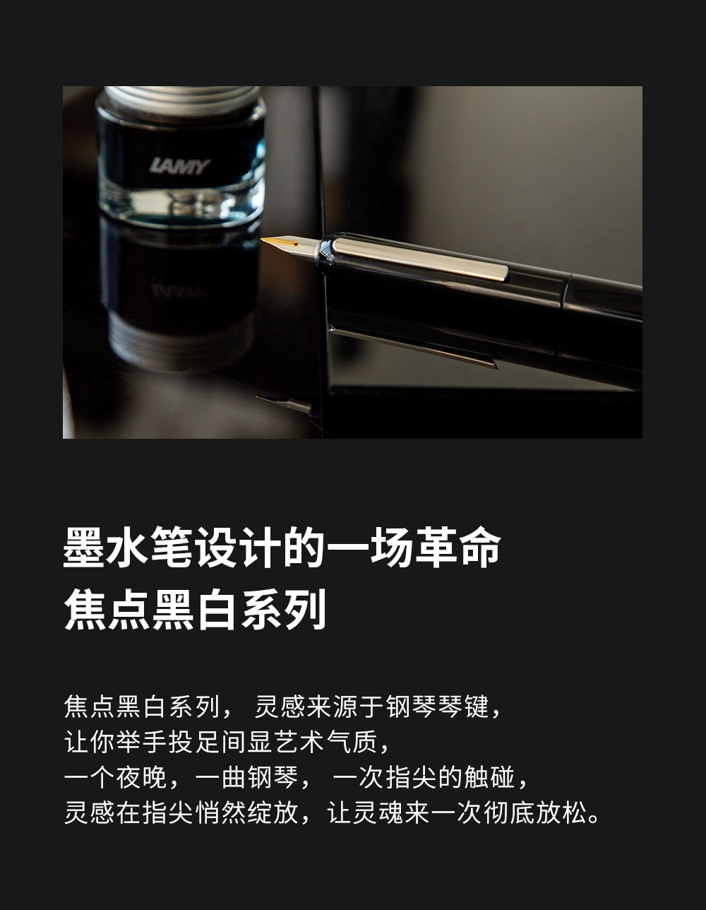 LAMY德国凌美焦点3Dialog系列14K金尖商务墨水笔礼物 黑白双色旋拧系统可伸缩笔夹