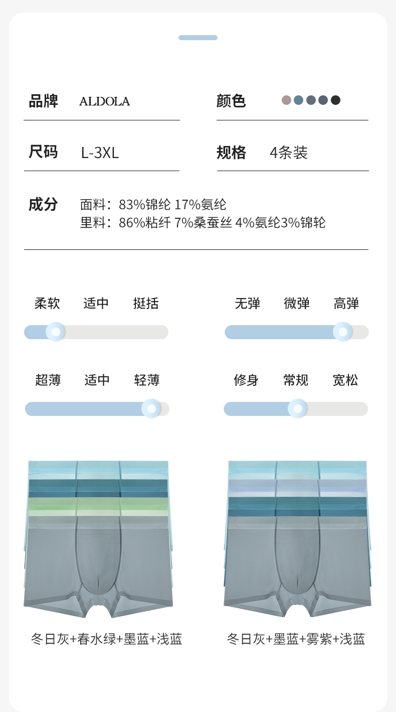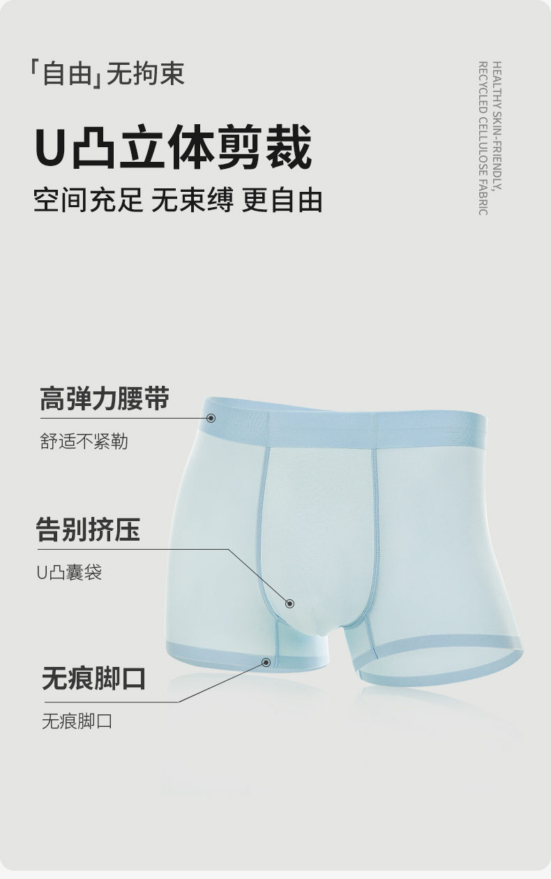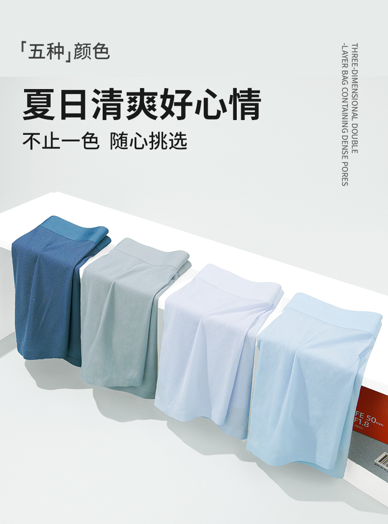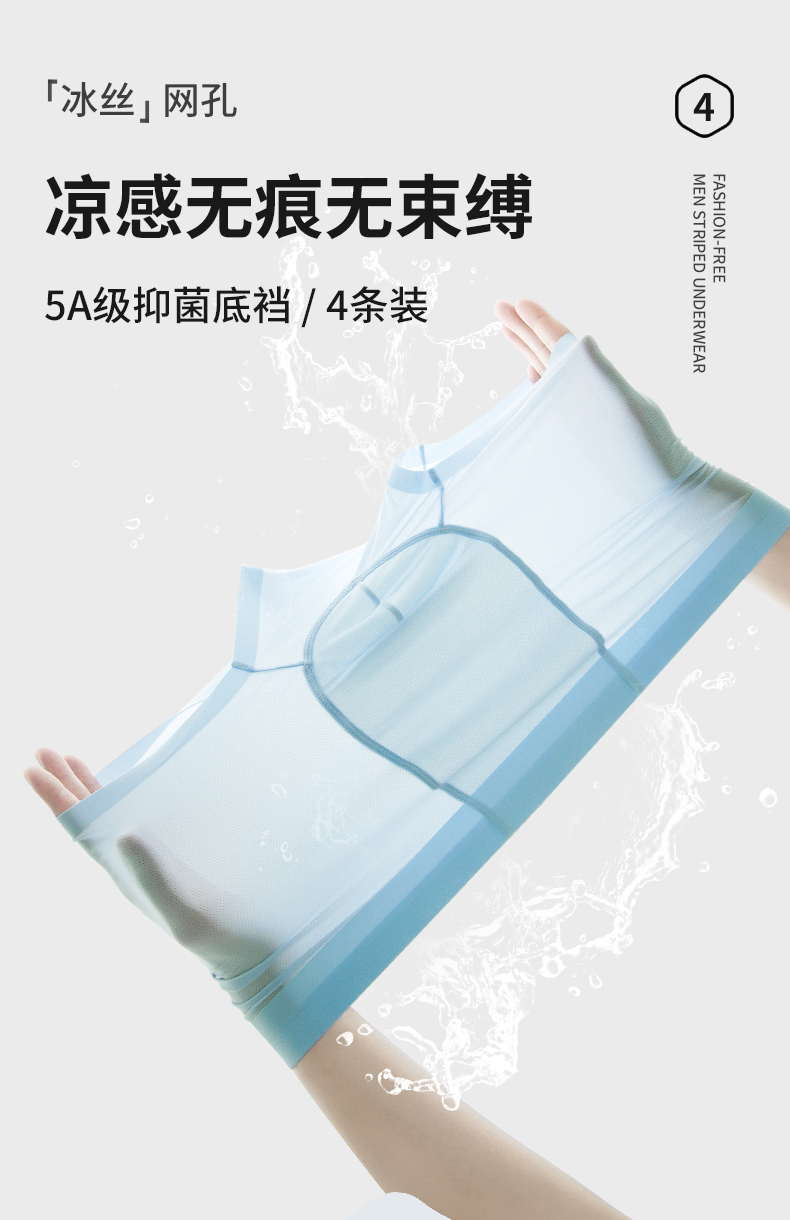 雅黛俪无痕内裤男凉感5A级抑菌底裆裸感亲肤U凸囊袋4条装平角裤