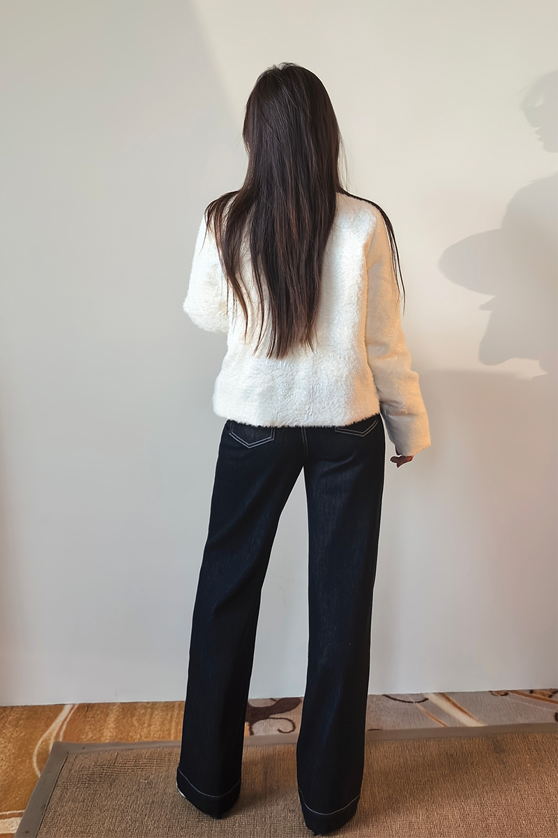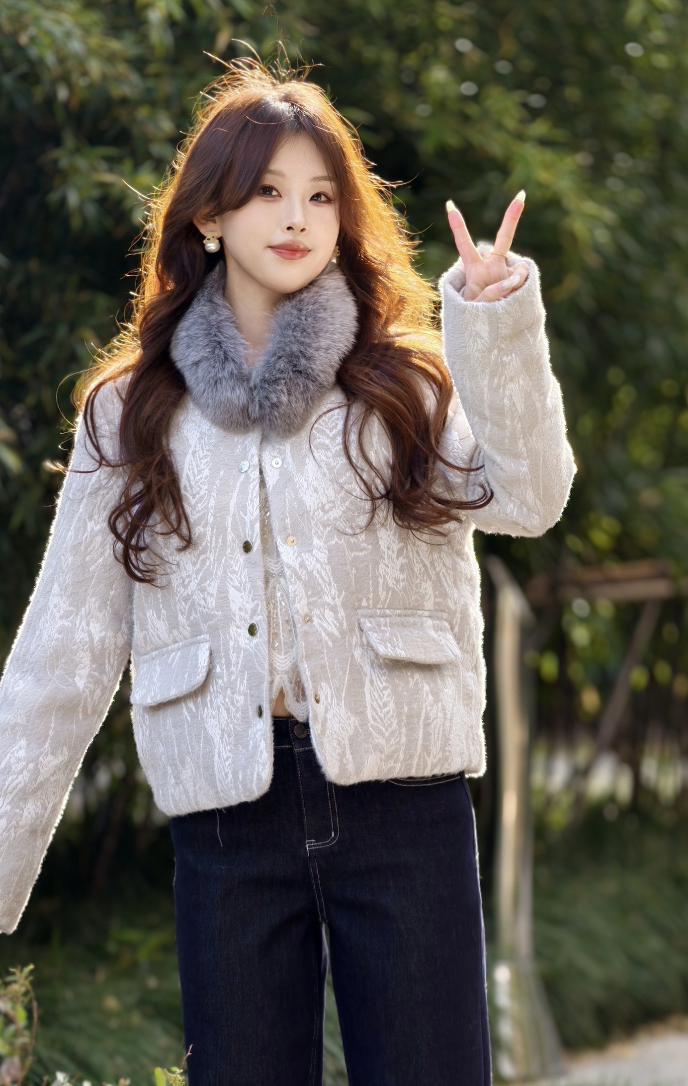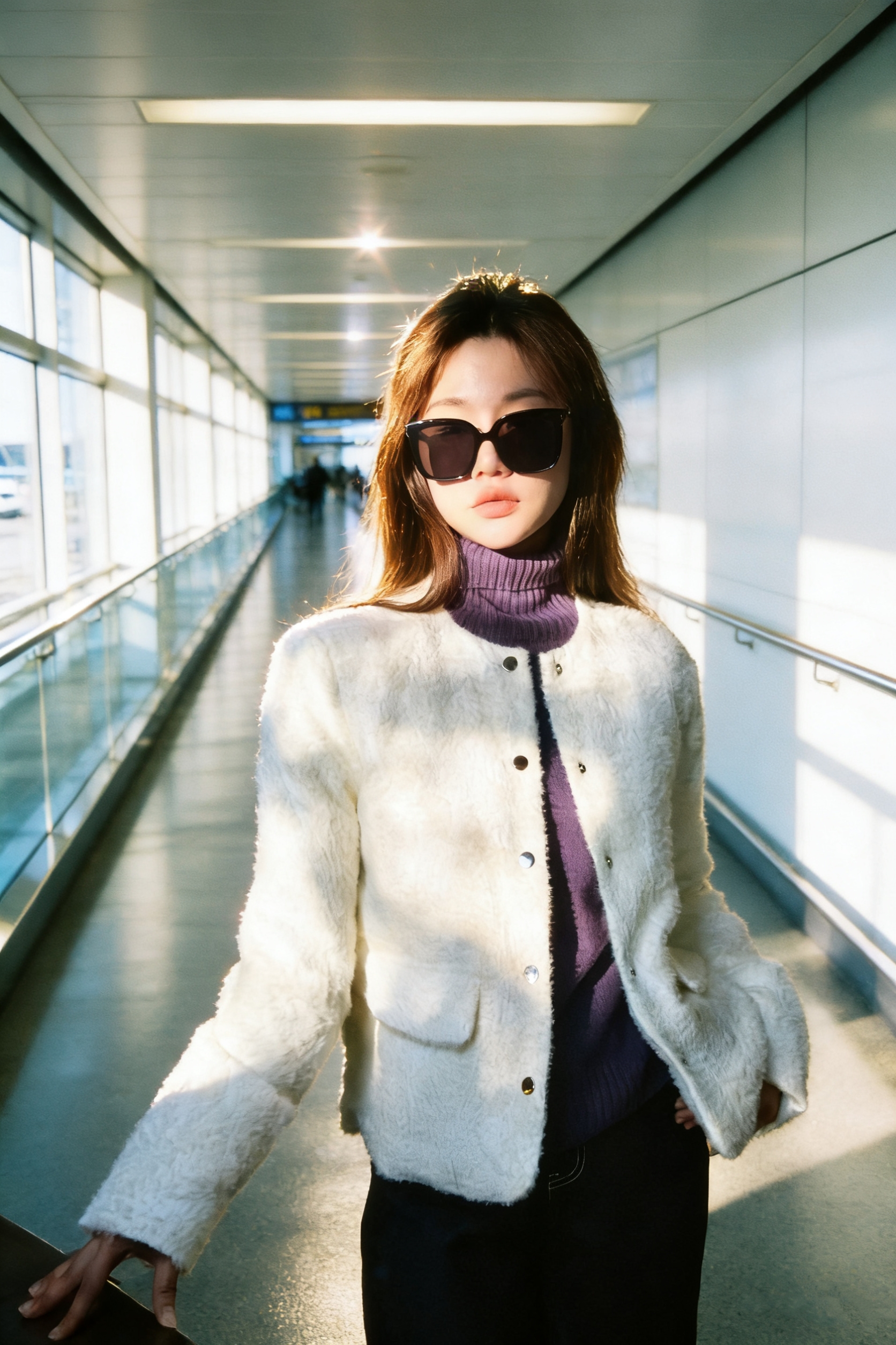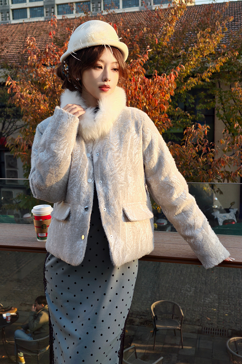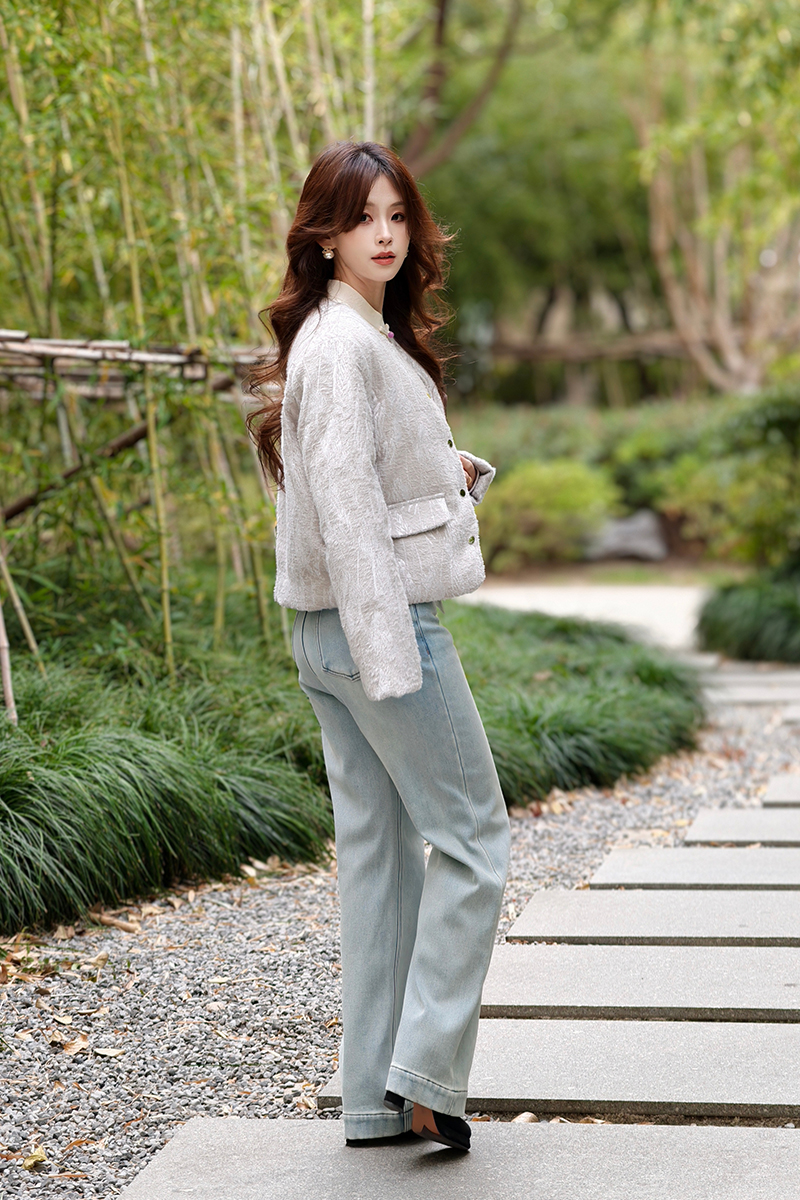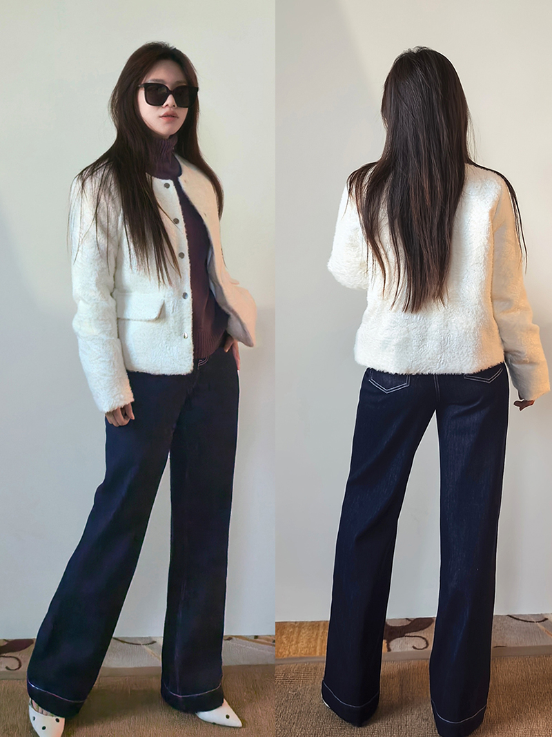 采用特殊的提花工艺,将纱线巧妙交织,仿佛将冬日晨雾揉进衣身~~