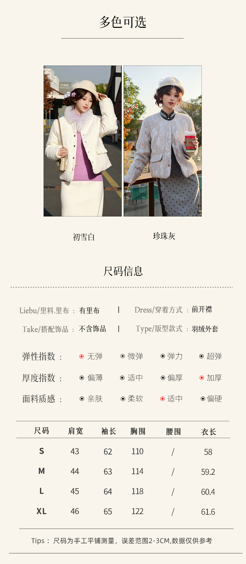 •重要场合:年终聚会、晚宴或生日派对时,它能让内搭的旗袍成为主角,外披这件羽绒服,仪式感满分,复古又灵动~