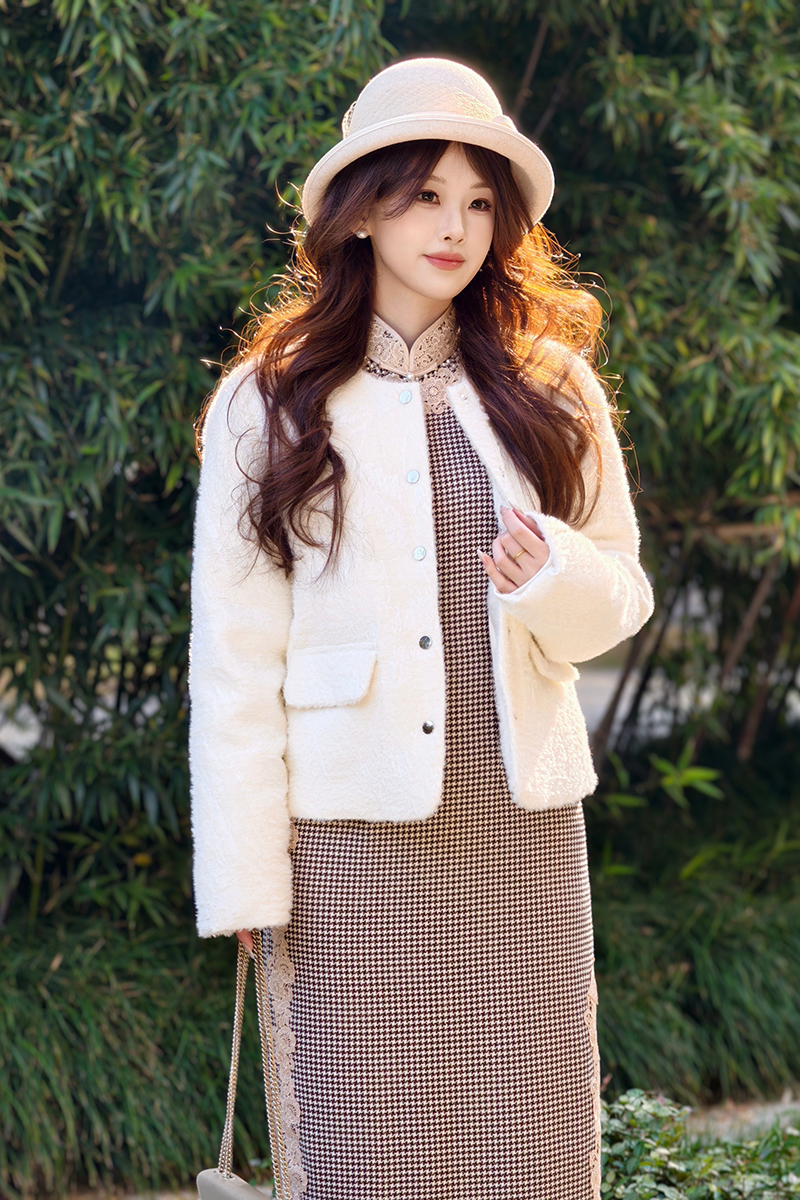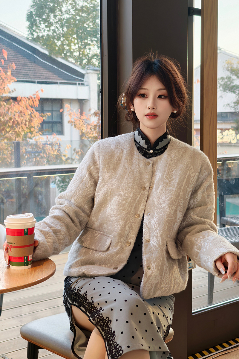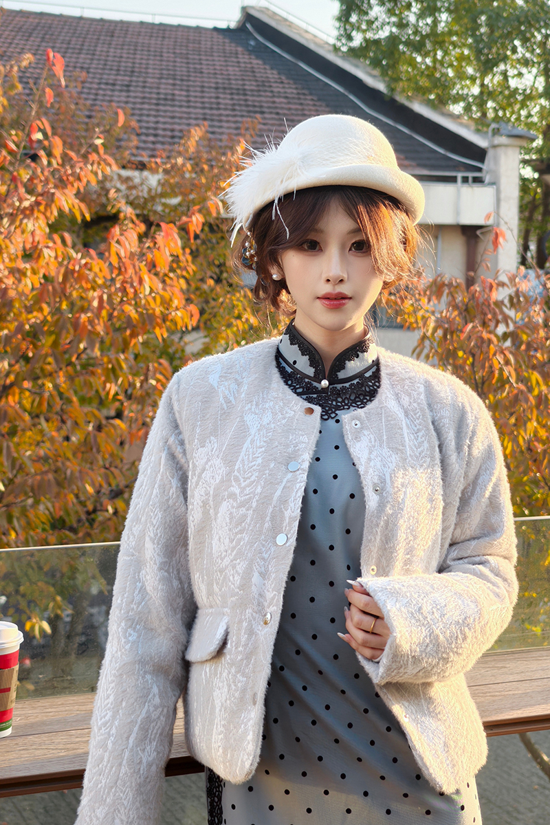 ▪️ 圆领+短款设计 → 搭配旗袍毫无压力