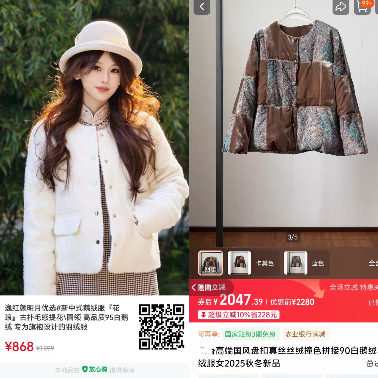 同样是冬日外套,市面上那些“伪新中式”羽绒服动不动千元以上,结果用的还是90白鹅绒。更别说现在假绒泛滥,我自己都踩过坑……