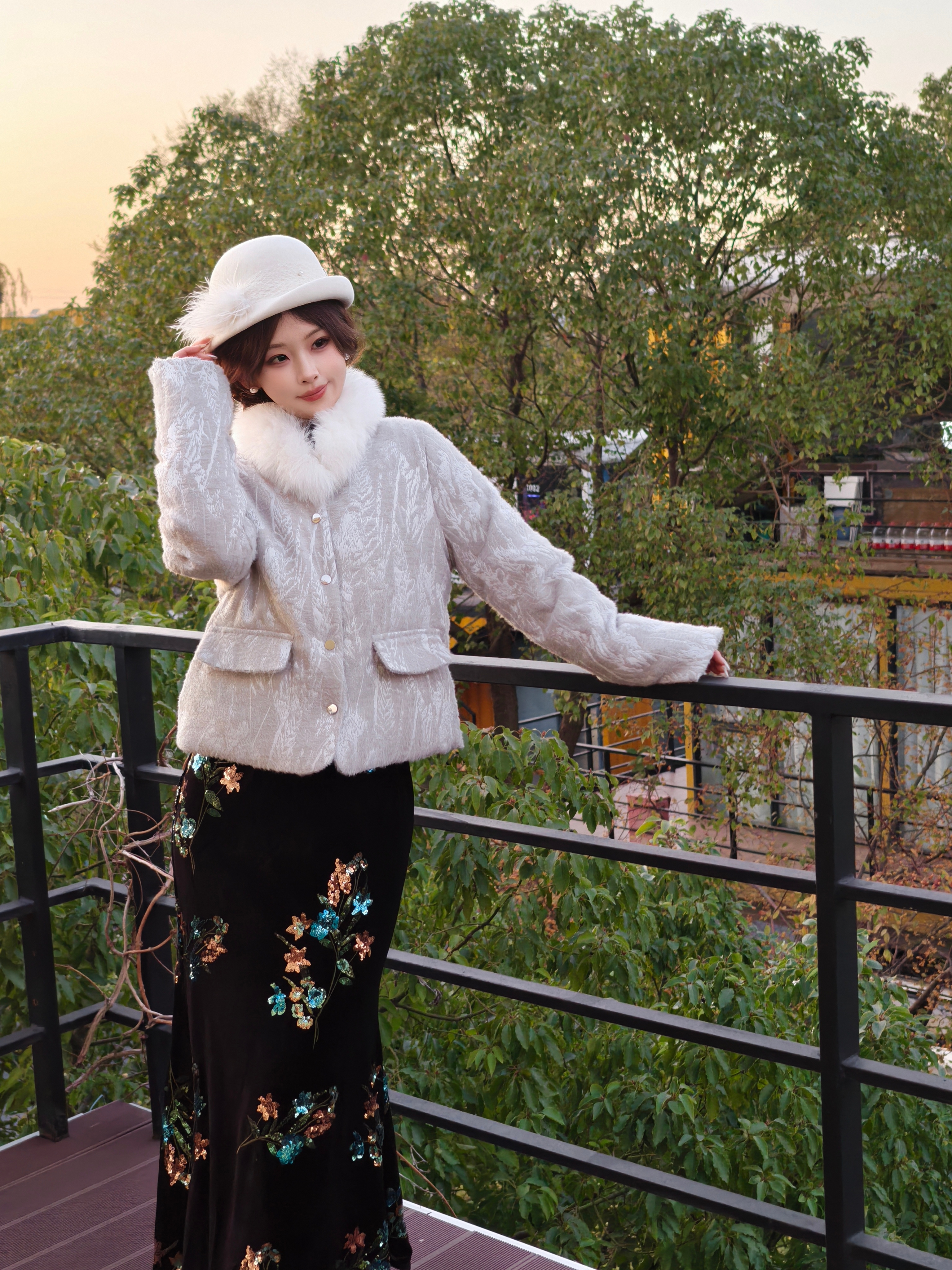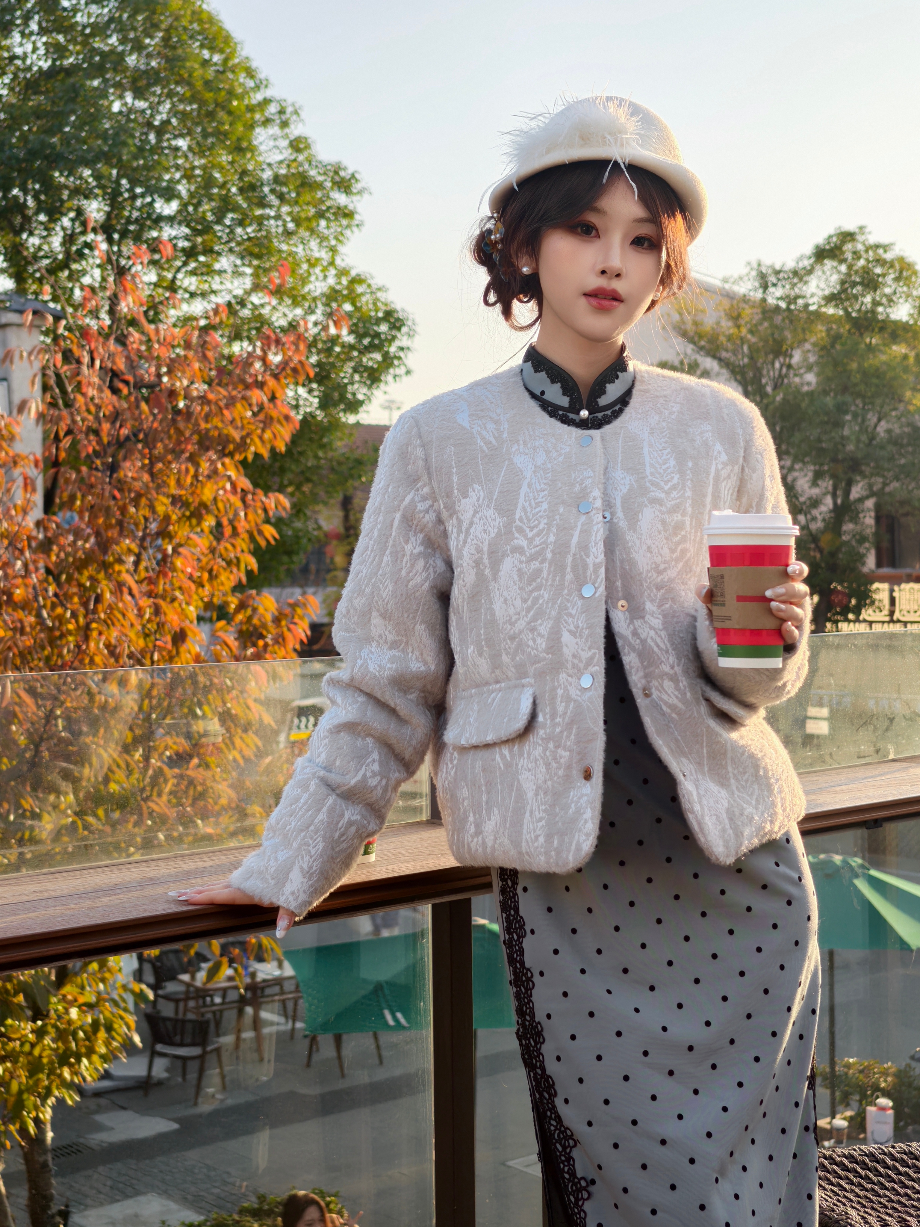 逸红颜明月优选#新中式鹅绒服『花琅』古朴毛感提花\圆领 高品质95白鹅绒 专为旗袍设计的羽绒服