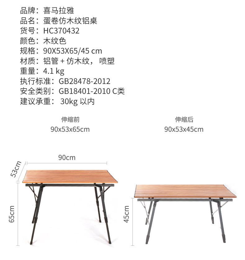 喜马拉雅户外折叠桌可伸缩露营旅行摆摊简易餐桌便携式小桌子