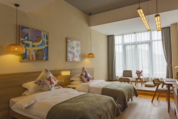 2、 住宿(2人1间,单人入住需补房差,儿童占床与成人同价):露营(帐篷睡袋等露营装备需自备)或原乡酒店山景联排标准间(携程价723元)