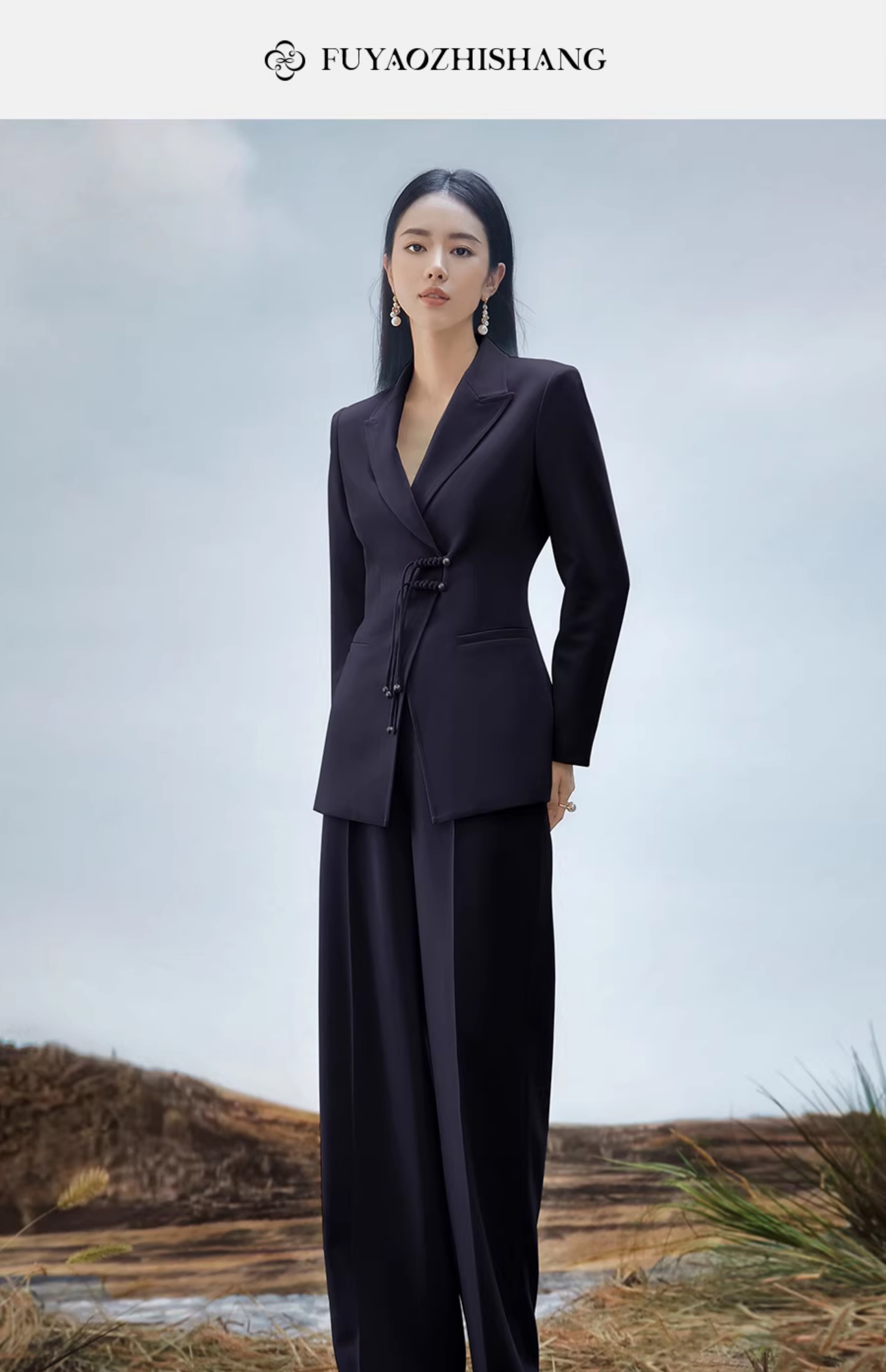 扶摇 中国风西装套装女长袖上衣盘扣新中式小众东方美西服
