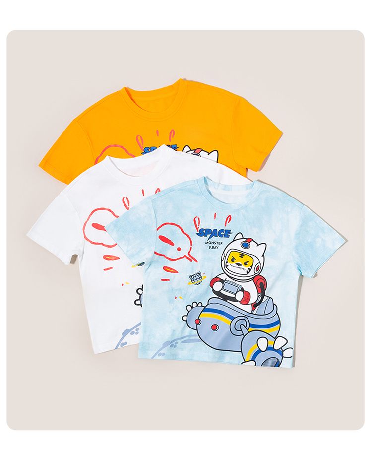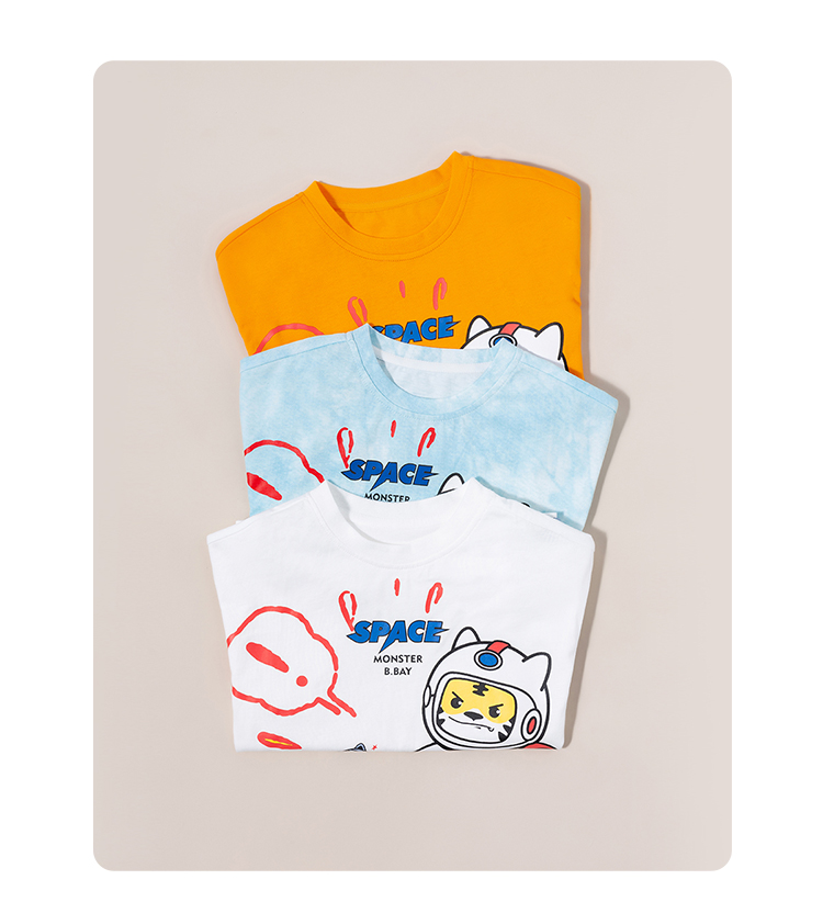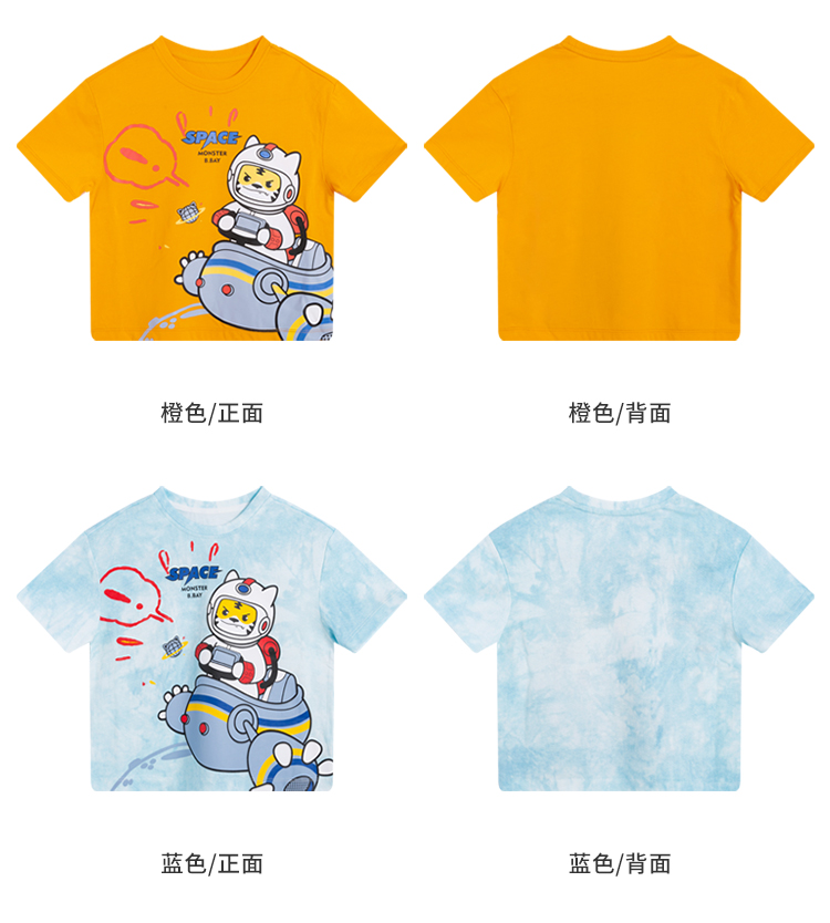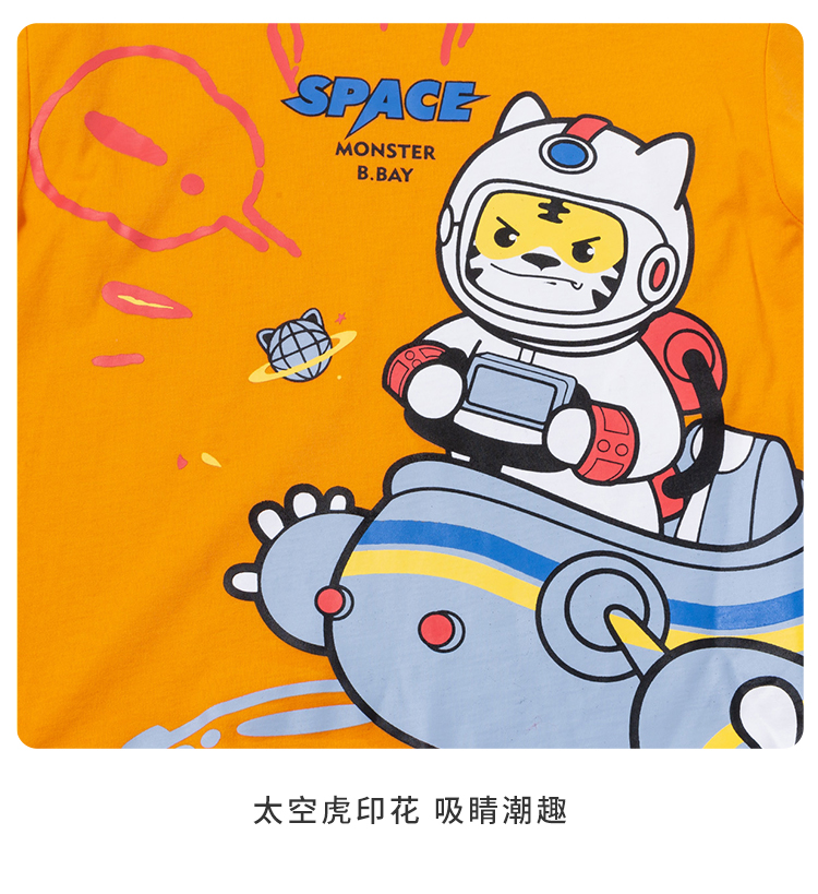 贝贝怡2022夏季新品儿童短袖清爽男童酷帅太空熊T恤衫