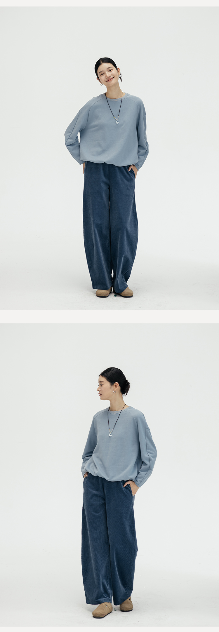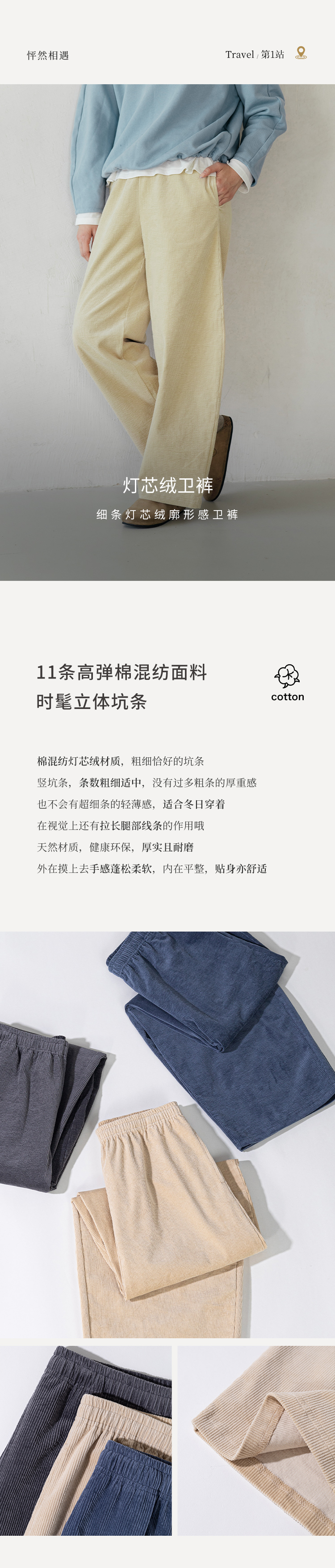 绽放724朵/秀场灯芯绒休闲裤早秋镰刀长裤复古细条廓形感香蕉裤