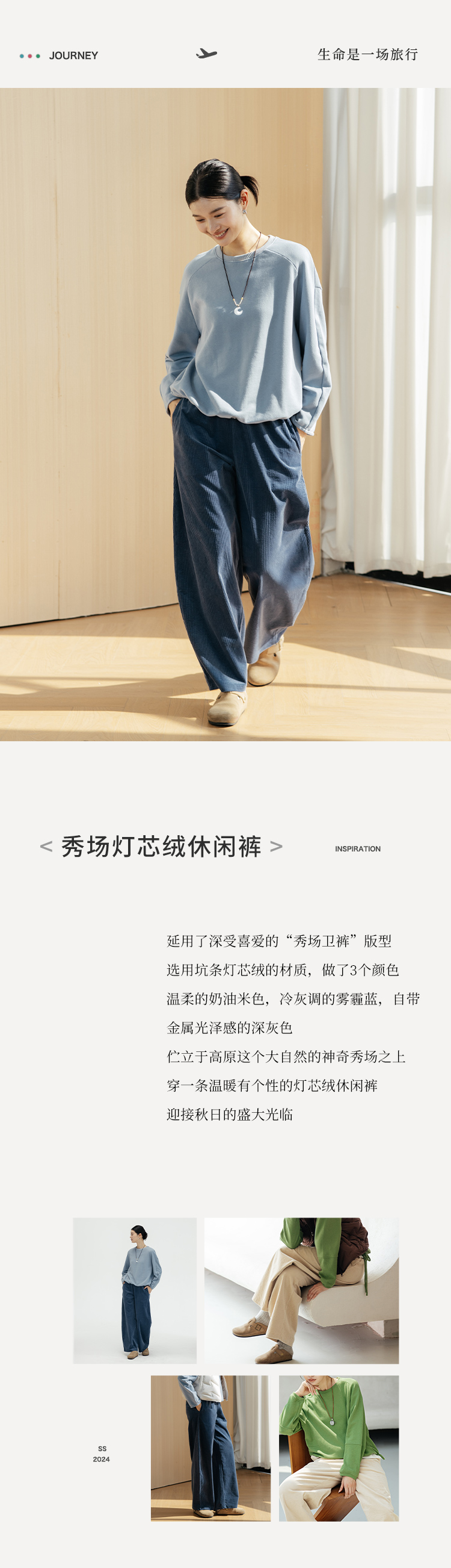 以天然亚麻为载体,融合热烈色彩与自在剪裁为身在城市、心怀远方的女性提供兼具美学与舒适的旅行着装