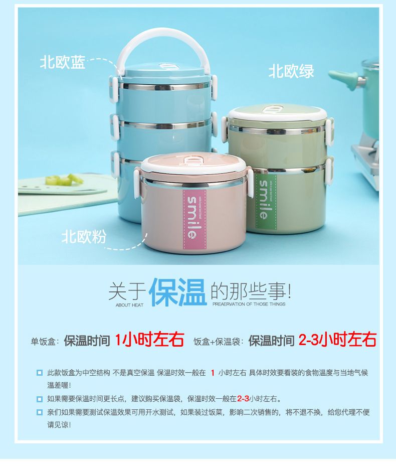 食品级加高不锈钢保温饭盒上班族饭盒学生女多层便当盒保温桶分格