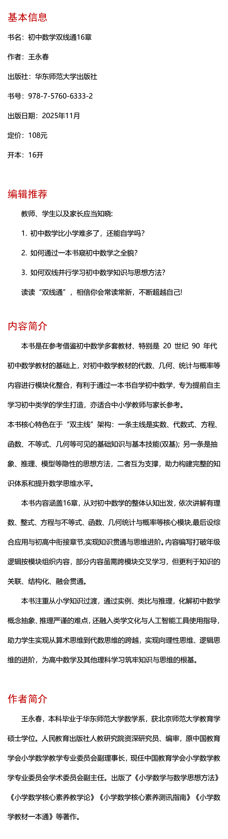 小学数学教材一本通 初中数学双线通16章 王永春 数学思想方法 小学数学学习方法