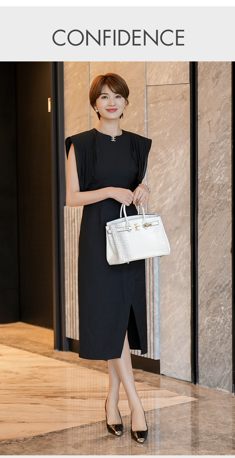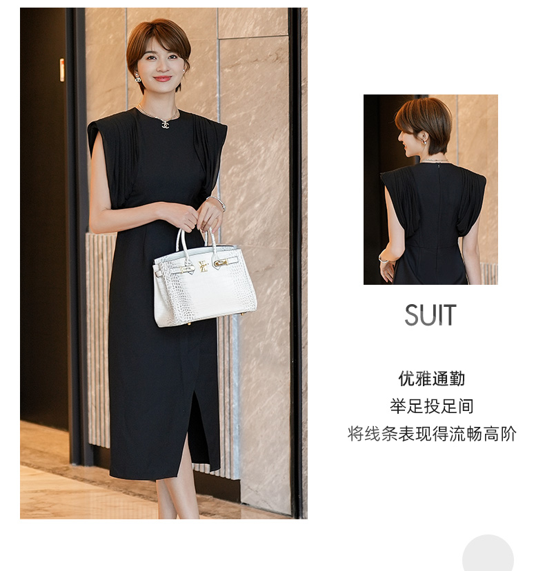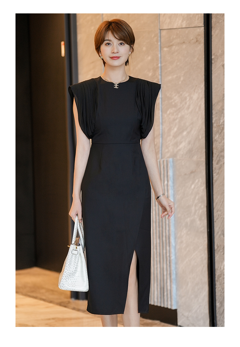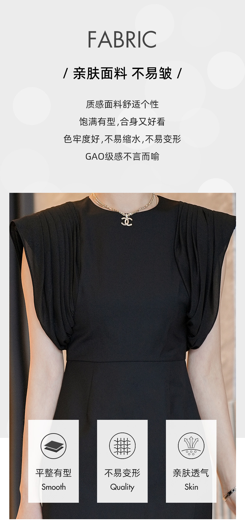 黑色连衣裙女夏季新款法式赫本风气质收腰显瘦包臀中长裙子