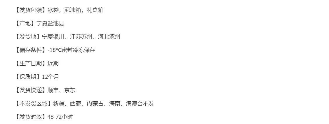 | 售后标准 | ※冻品,不支持7天无理由退换!!!不支持退回!!!※ ※不以个人主观因素为由售后,不支持拦截撤单,修改地址(请客户下单时确认收货信息无误)※ ①、收到后如有少发错发/质量问题的情况,请在签收24小时内提交售后+问题商品照片联系客服处理,(视情况补发,补偿或者退款,超时不予处理,敬请理解。) ②、产品一旦发出后拒绝任何形式拒签,收到产品后当场验货,如出现问题,请签收拍照并与客服联系,我们会第一时间处理 ③、客户个人原因(收货信息有误, 派件电话无人接听, 派送无人签收等)导致货物不能正常送达均不在售后范围内 ④因快递暴力导致产品品相不好,不影响食用,不在售后范围内 |