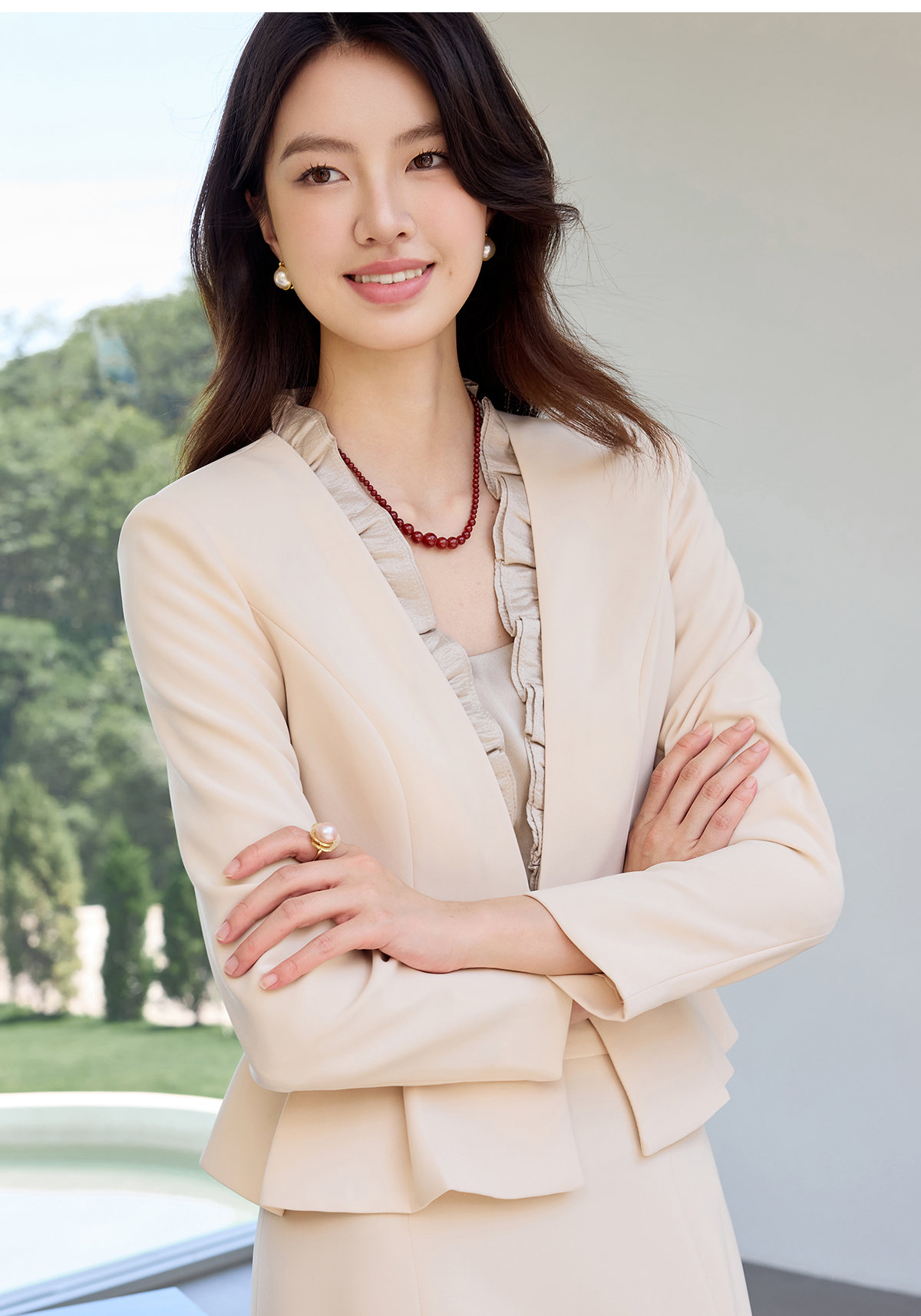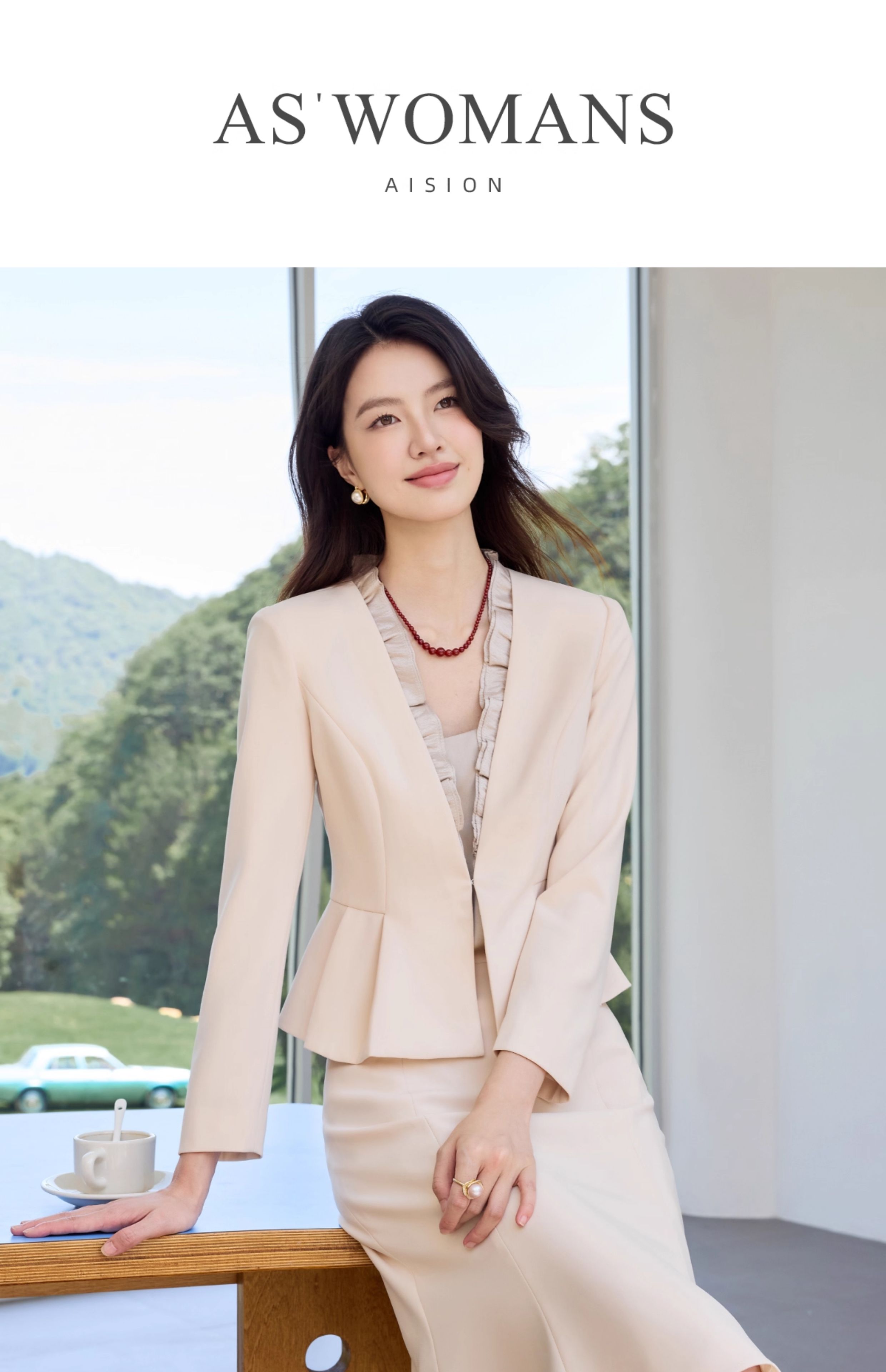 艾尚臣2025新款米色小香风时尚套装时尚气质轻熟风正式场合两件套