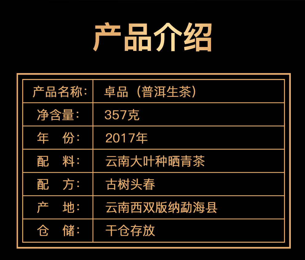 爻牌丨卓品 古树纯料 古树头春 普洱生茶 生普 2017年原料 357g