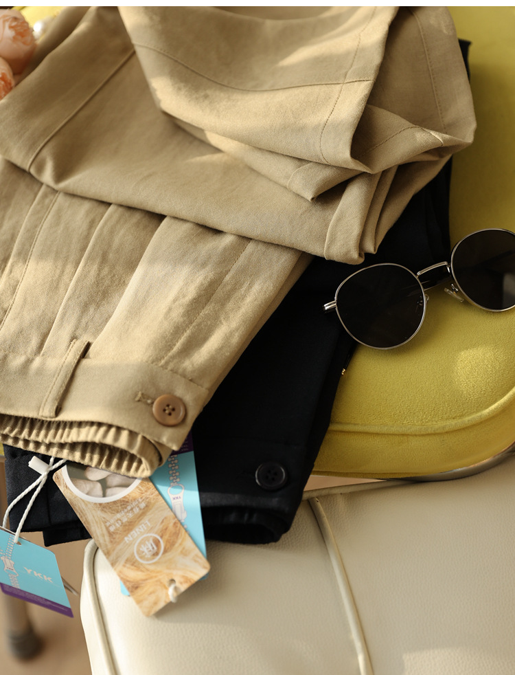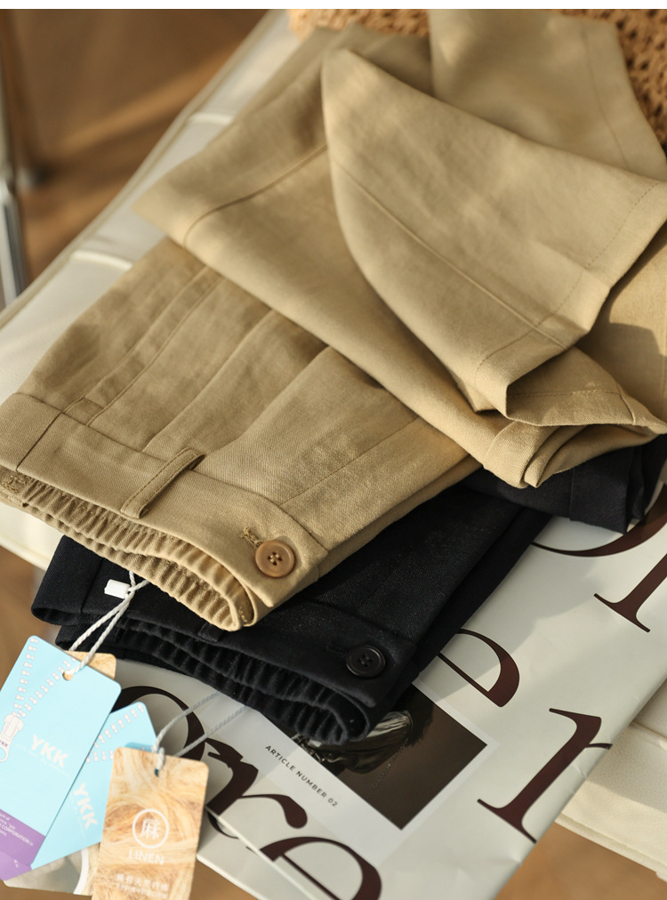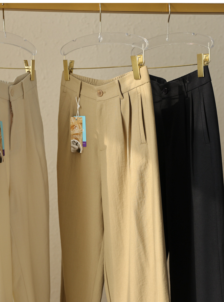 又有chao强的抗皱性能,比一般的亚麻裤更好打理