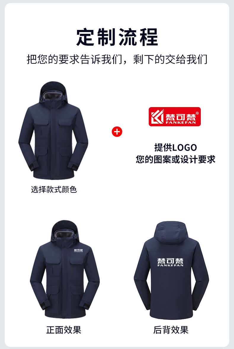 冬季工作服棉服冲锋衣定制加厚工厂快递羽绒防风外套印字可拆卸