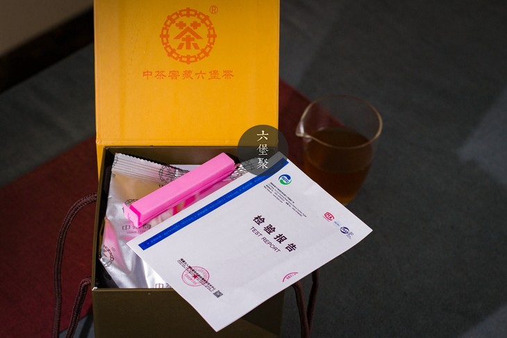 打开纸资外盒,里面是铝箔袋装着的散茶,还配有封口夹(便于拆开后的保存)及检验报告,袋子底部有便于透气和后期转化的小孔。细节之处足用心和严谨。