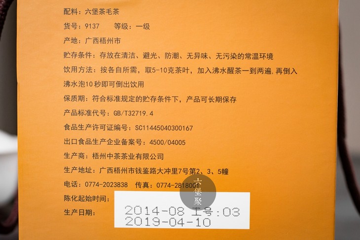 陈化日期:2014年8月