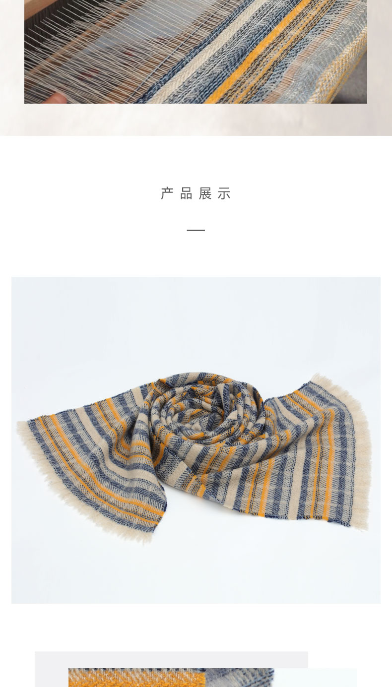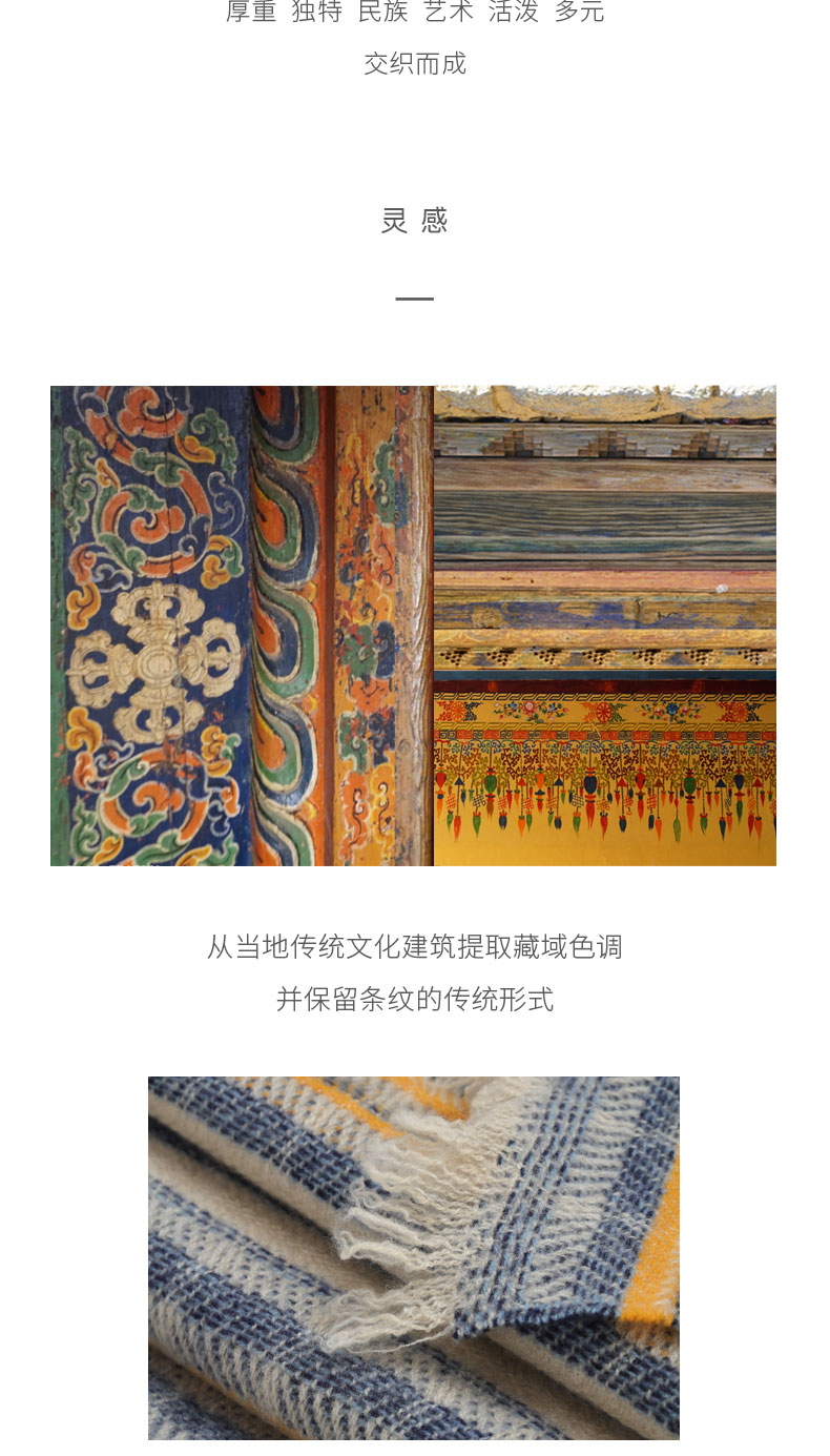 西藏手工氆氇羊绒彩条撞色围巾 SJF95P551A