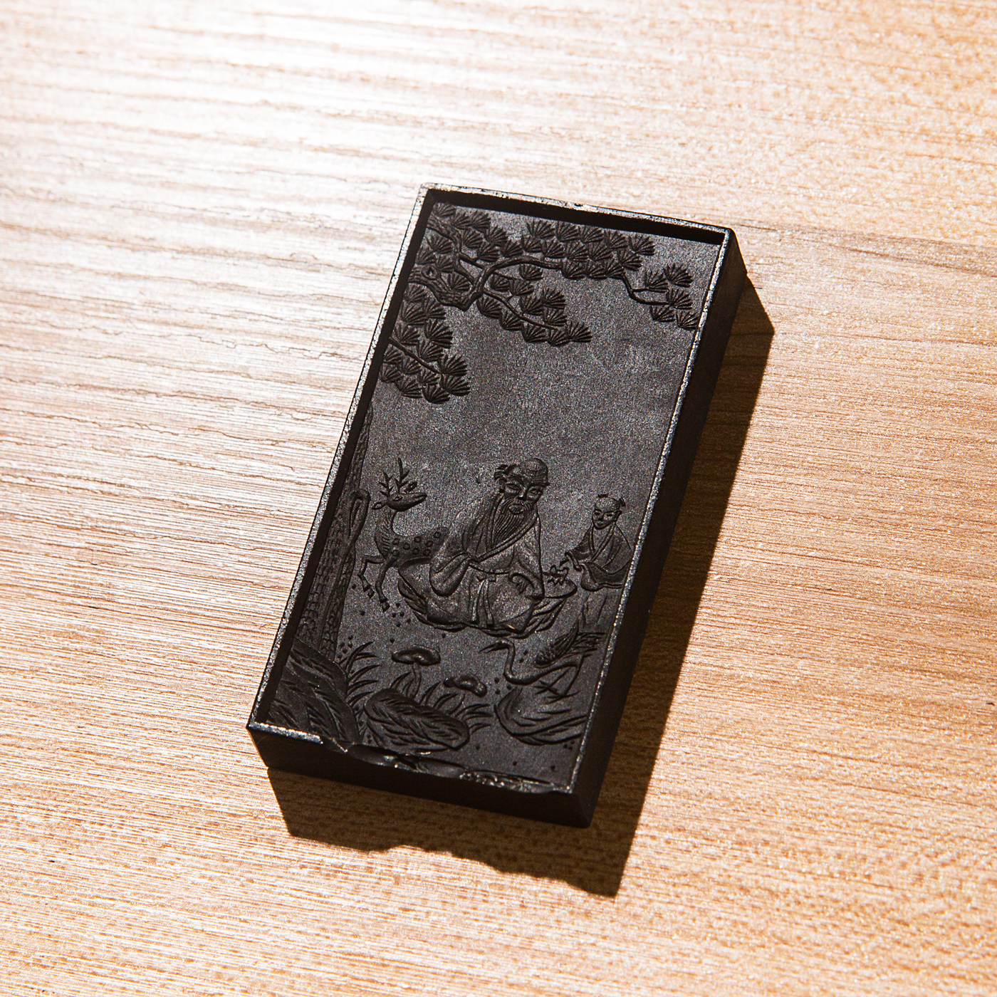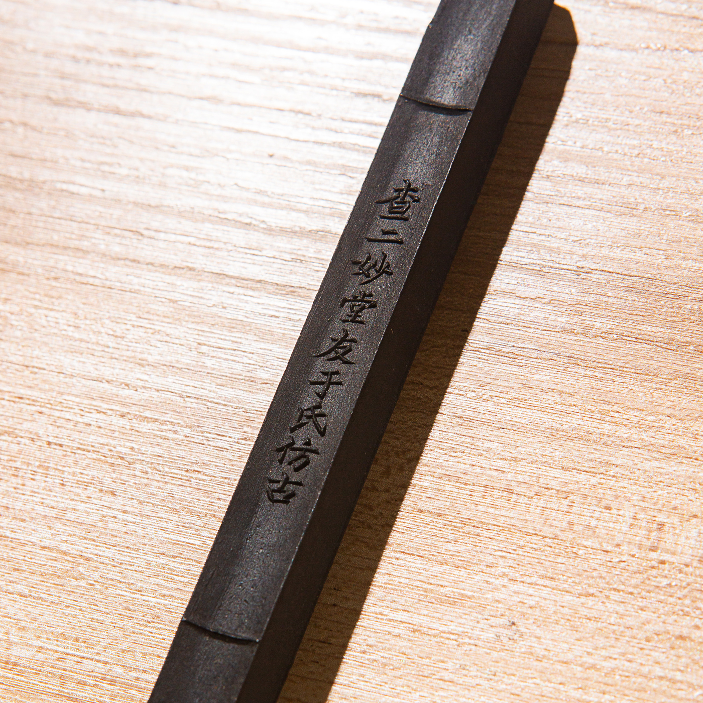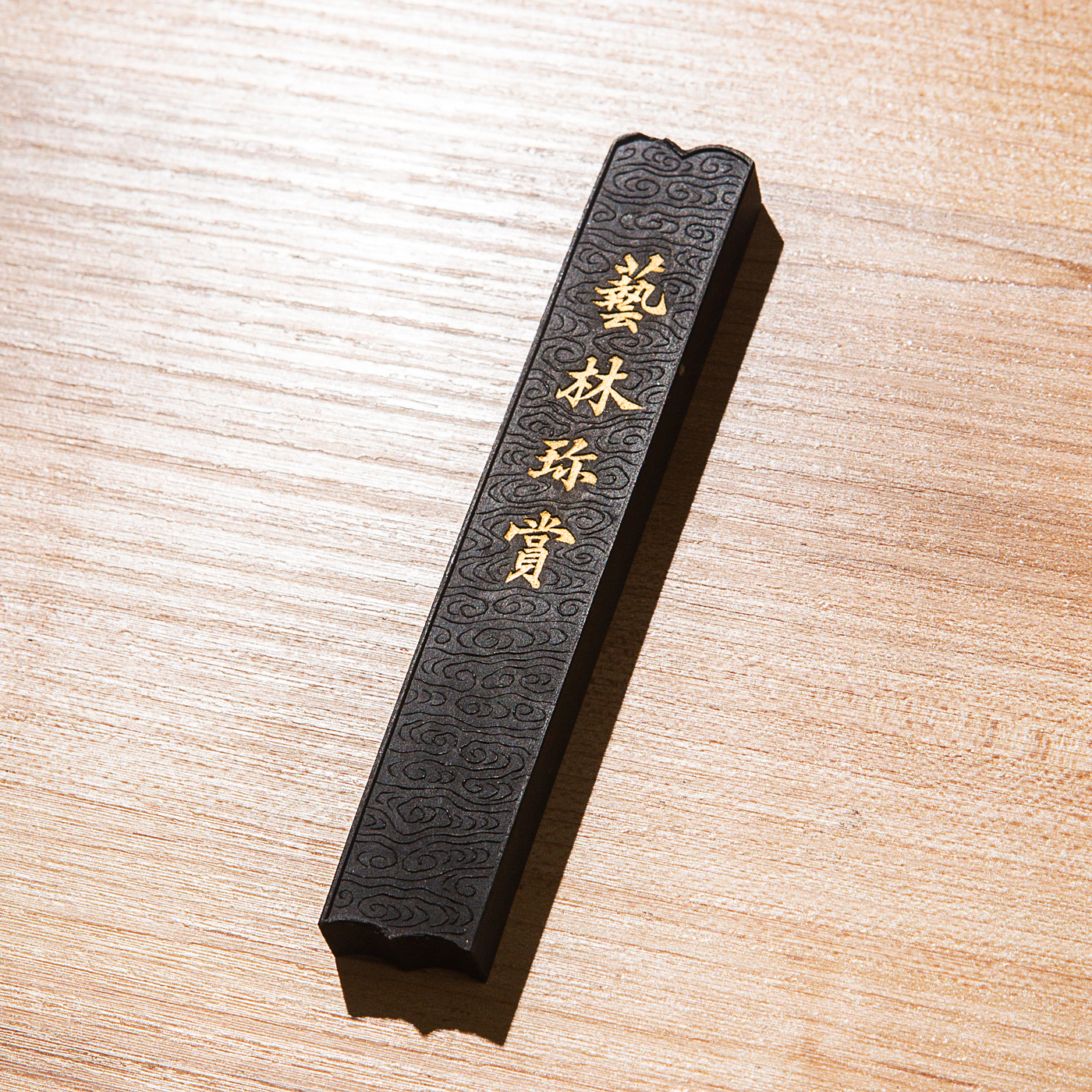 清代查二妙堂制手卷套墨,一套十锭。其材质上乘,雕版精美,包装考究,且具有历史意义。此墨存世少有,十分难得。