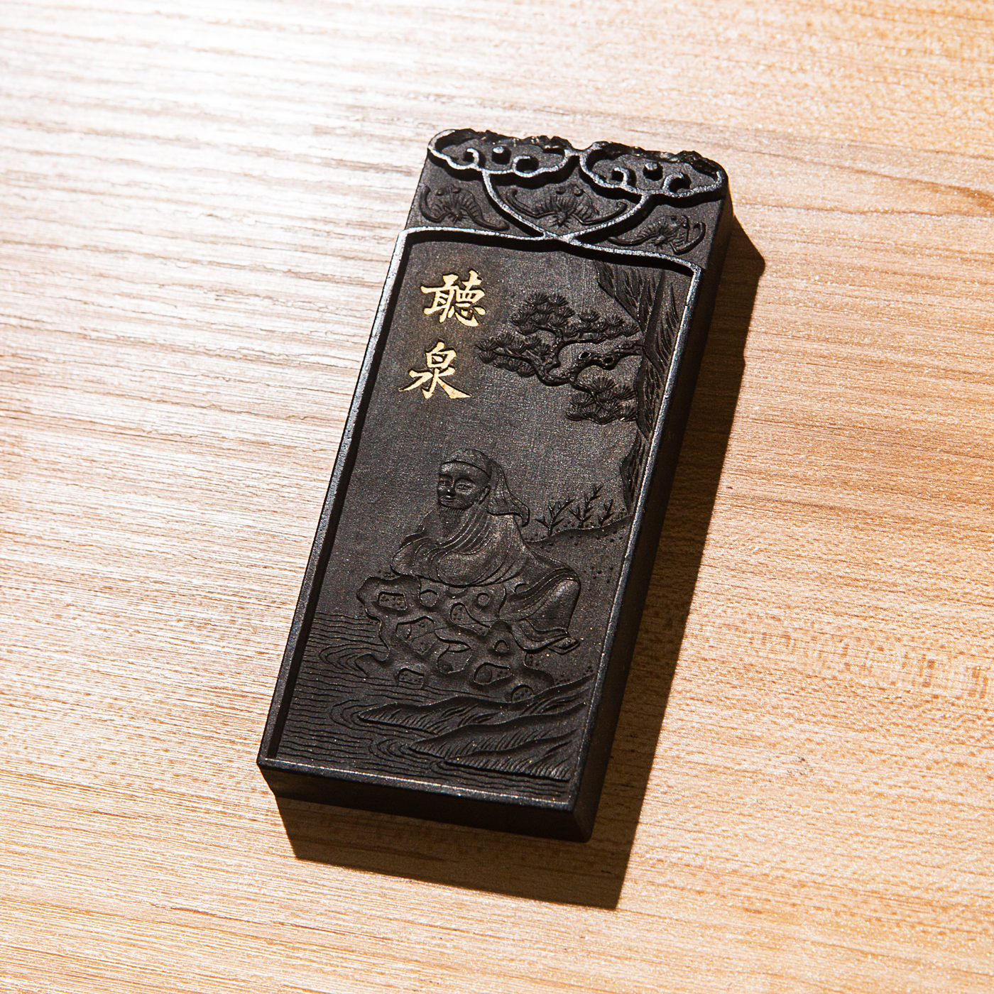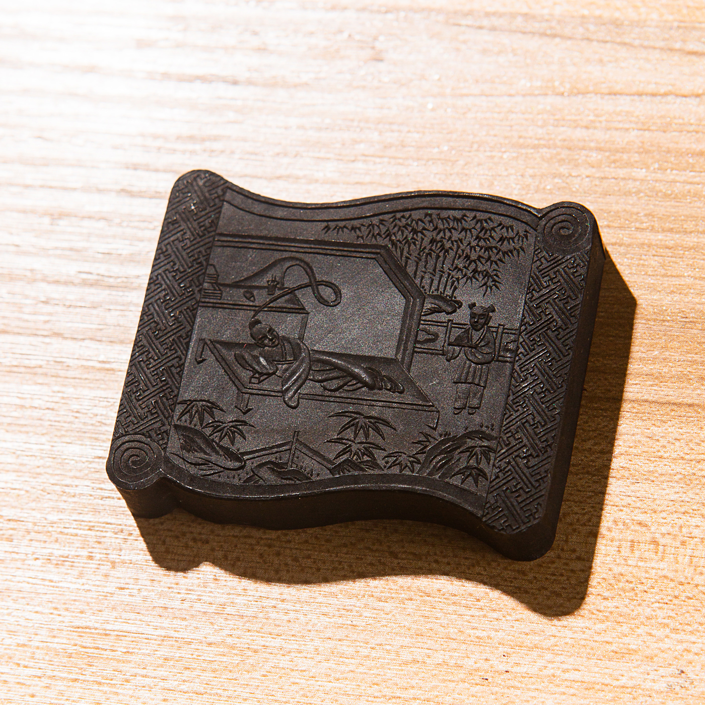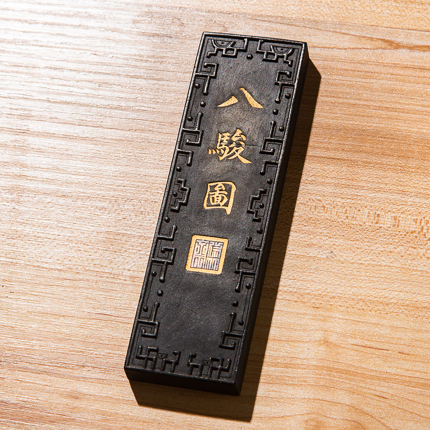 清代查二妙堂制手卷套墨,一套十锭。其材质上乘,雕版精美,包装考究,且具有历史意义。此墨存世少有,十分难得。