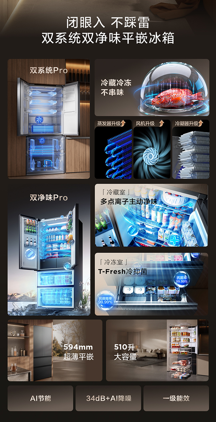 【新品上市】TCL大无界510L法式多门冰箱双系统Pro双净味594mm超薄零嵌冰箱R510T9-DQS