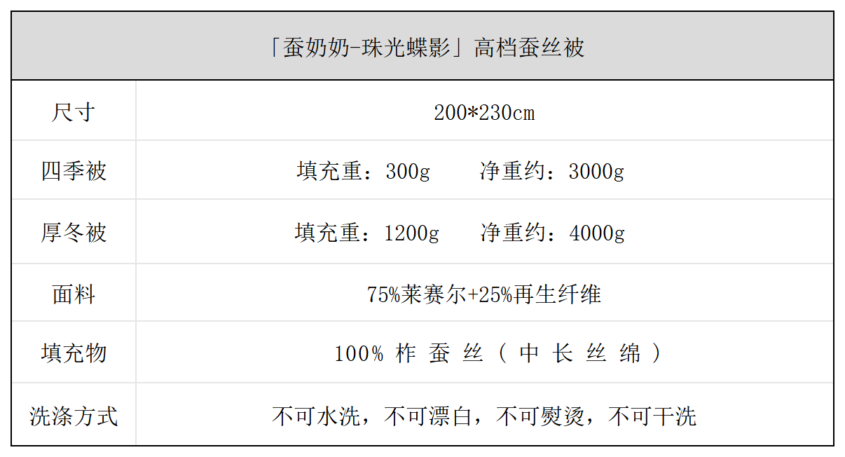 【果壳抽检填充物100%柞蚕丝】蚕奶奶蚕丝被东北寒带有机柞蚕丝 珠光蝶影系列精致礼盒 尺寸200*230